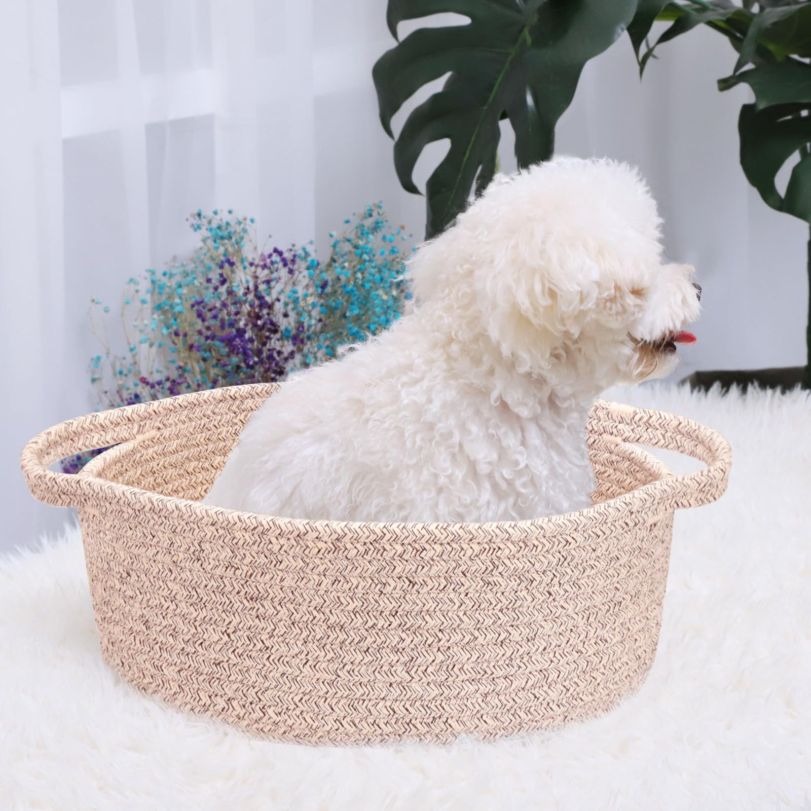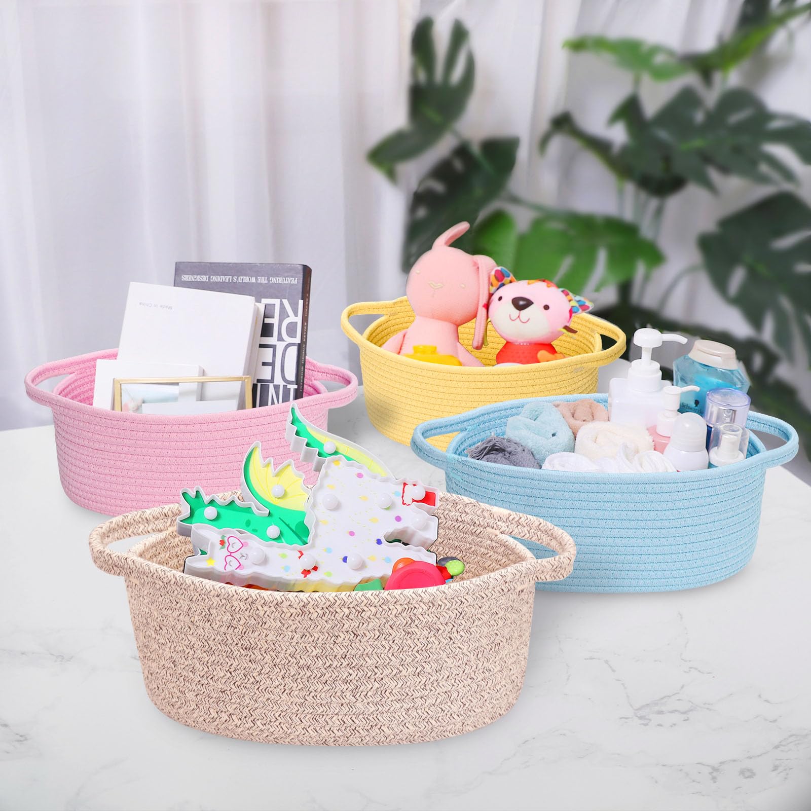100% cotton material, small rope basket, natural, chemical-free, skin-friendly, woven basket safe for baby and pets, scratch-free to floors or walls
