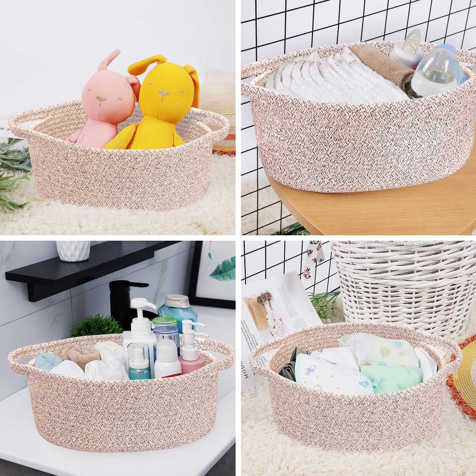 Small baskets for organizing, keep spa essential, fruits, remote control, towel, diaper, blanket, toy, nursery necessaries, make-ups organized in order. Even can be used as dog cat basket