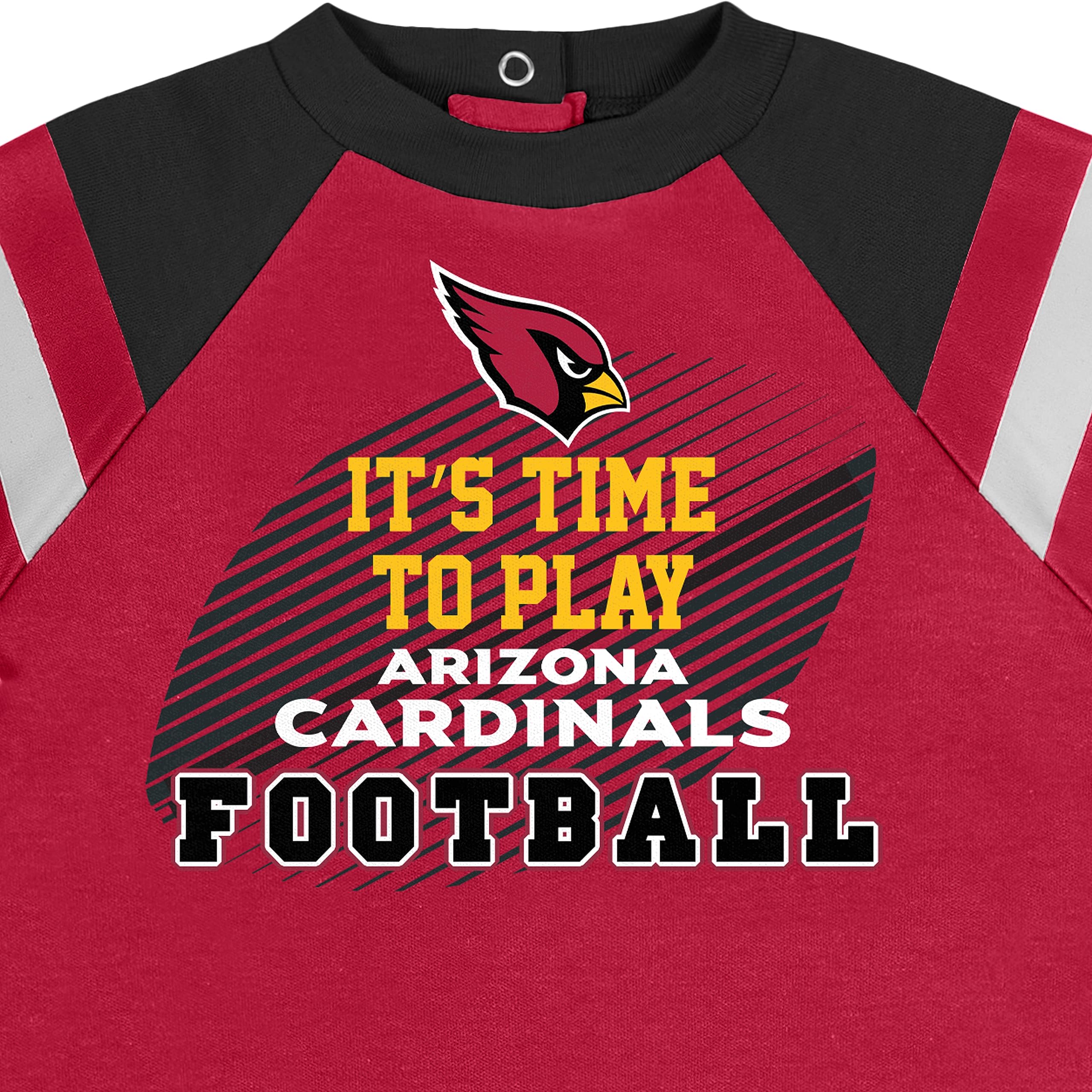 Team colors with screen print & puff print Cardinals logo &"It's time to play football!"