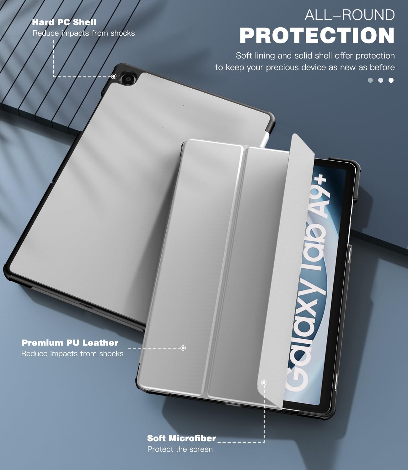 Premium Material: This Samsung A9 Plus Tablet Case is made of premium PU leather exterior, soft microfiber interior lining, and back hard PC cover design protect your tablet against the bumps and scratches of everyday life