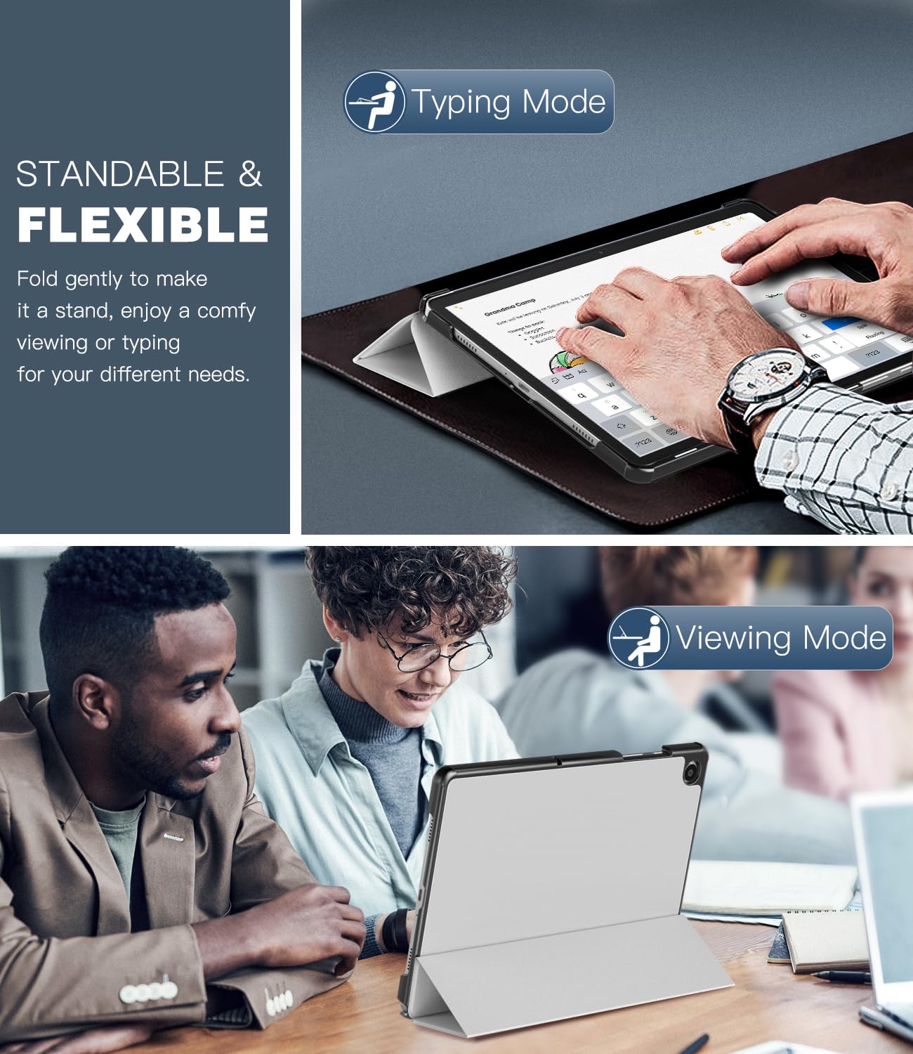 Adjustable Stand Angles: The top of this Galaxy Tab A9 Plus Case folds back to make a stand, which provides a sturdy stand position for both viewing and typing. Free your hands when watching, reading, or writing, a good way to alleviate neck strain