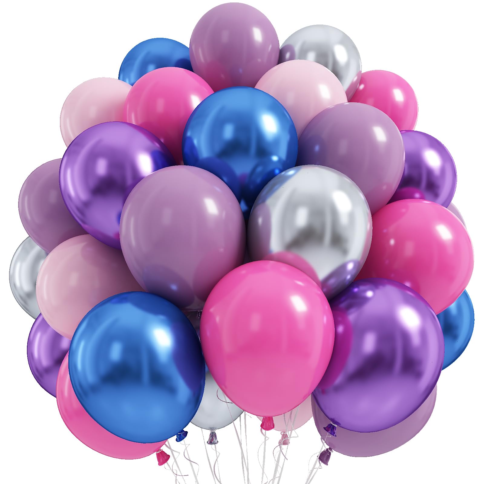 - Birthday balloon Decoration Kit for Birthday Party and Celebrations - Add colorful colors to your celebrations! This blue balloons is for various venues, easily creating a joyful and warm party atmosphere. Each balloon is 12 inches in size, suitable for various venue arrangements, adding fun and vitality to the party. - Applicable scenarios: - Suitable for birthday, wedding, baby shower and many other occasions.Make every special moment more meaningful, whether it is an indoor party or an outdoor celebration. - Configuration:( 12 inch balloons ) - royal purple balloons: 9 pcs - dusty pink balloons: 8 pcs - hot pink balloons: 8 pcs - metallic blue balloons: 8 pcs - metallic purple balloons: 8 pcs - metallic silver balloons: 8 pcs - Ribbon: 1 roll Features: - This balloons for birthday party brings a joyful and cute party atmosphere with a variety of balloon designs. - A roll of ribbon can be easily tied to the balloons, simplifying the arrangement process. - Made of environmentally friendly materials, the party balloons decorations are sturdy and durable to ensure long lasting use during the party. - Warm reminder: - To ensure the best effect of the balloons 12 inch, please avoid over inflation and keep away from sharp objects. - Use latex balloons assorted colors under adult supervision to ensure safety. - Not suitable for children under 3 years old. - Suitable for indoor and outdoor use, avoid direct sunlight and high temperature environment.