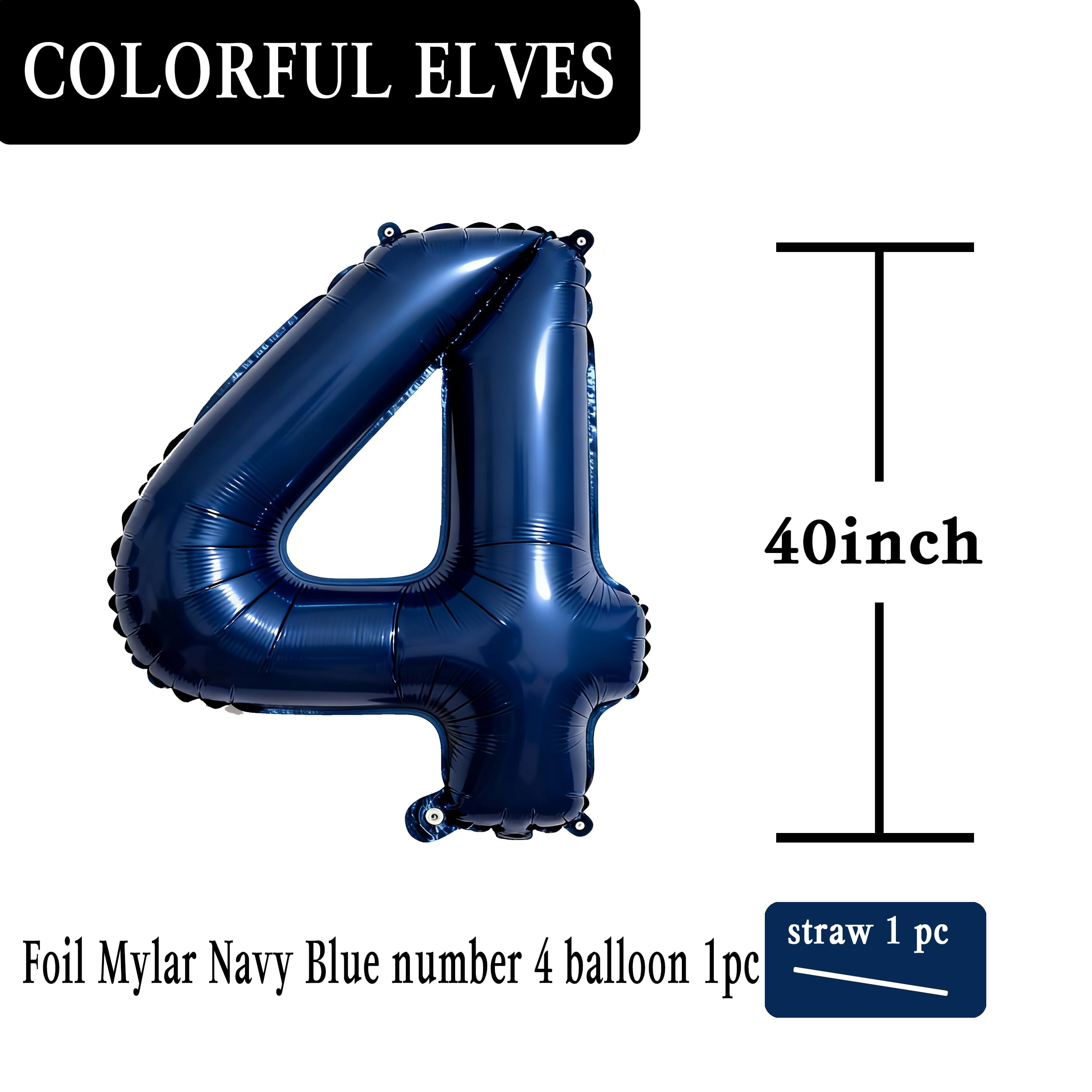 CHOOSE THEM: The Dark Blue number 4 balloons are made of aluminum foil, and the size of the balloons is 42 inches, which is 40 inches when filled with helium or air. Please use the straw in the balloon set to inflate it slowly.