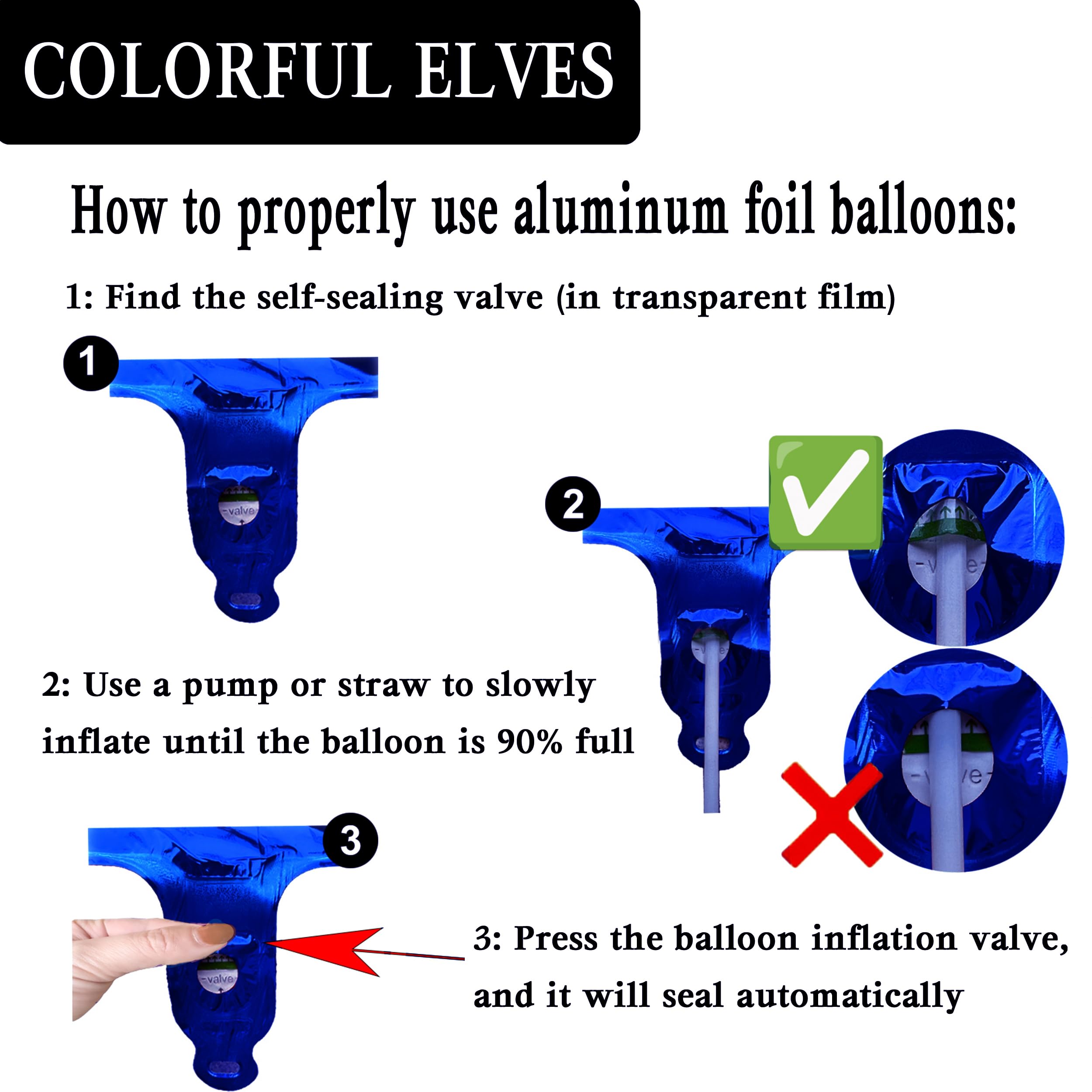 TIPS FOR NUMBER BALLOONS: Due to the thermal expansion and contraction characteristics of aluminum foil,please avoid filling more than 90% of air or helium.If it is over-inflated,it can easily cause the balloon to explode at high temperatures.Please avoid leaving the balloons in an outdoor high temperature environment for a long time.If the ambient temperature is too low,it will also cause the balloon to deflate.At this point,you can use the straw to inflate again.