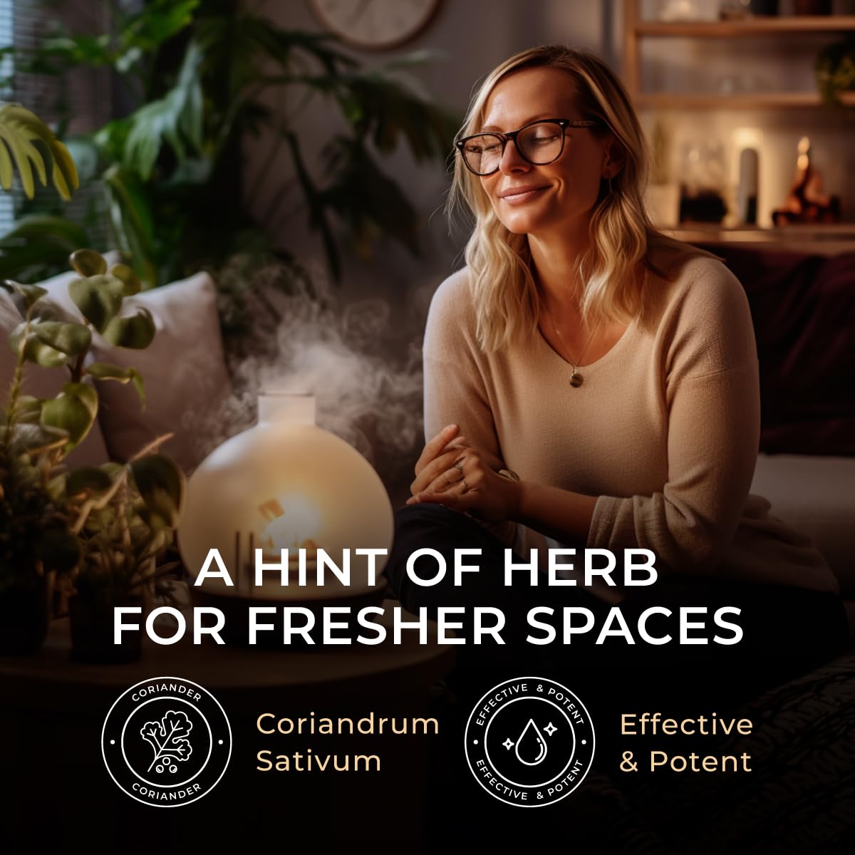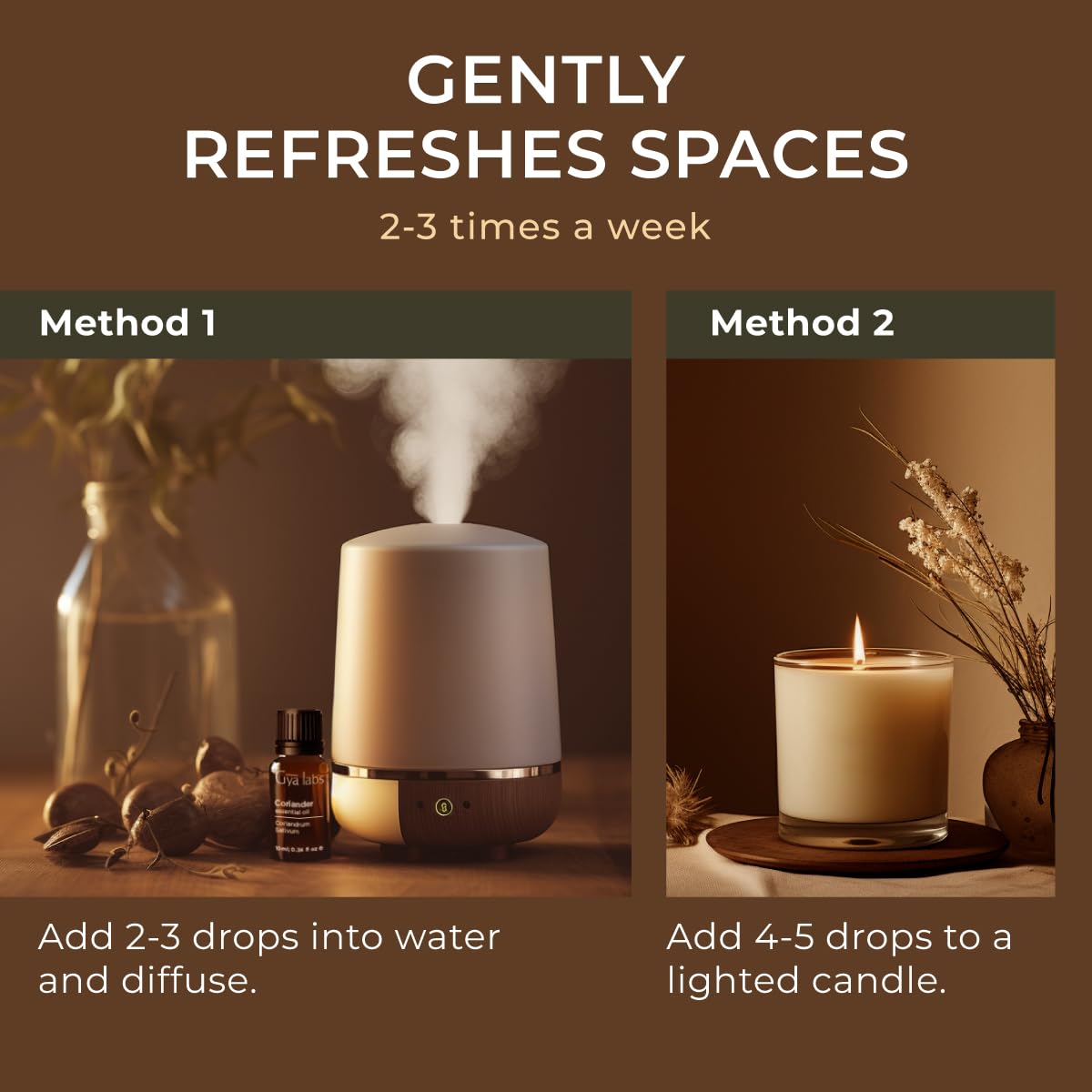 Coriander essential oil for diffuser & candle making. Exuding a sweet, herbaceous and slightly woody scent, coriander essential Oil diffuser infuses a grounding ambiance into any room. Diffuse 2-3 drops to instill a soothed and refreshed atmosphere.