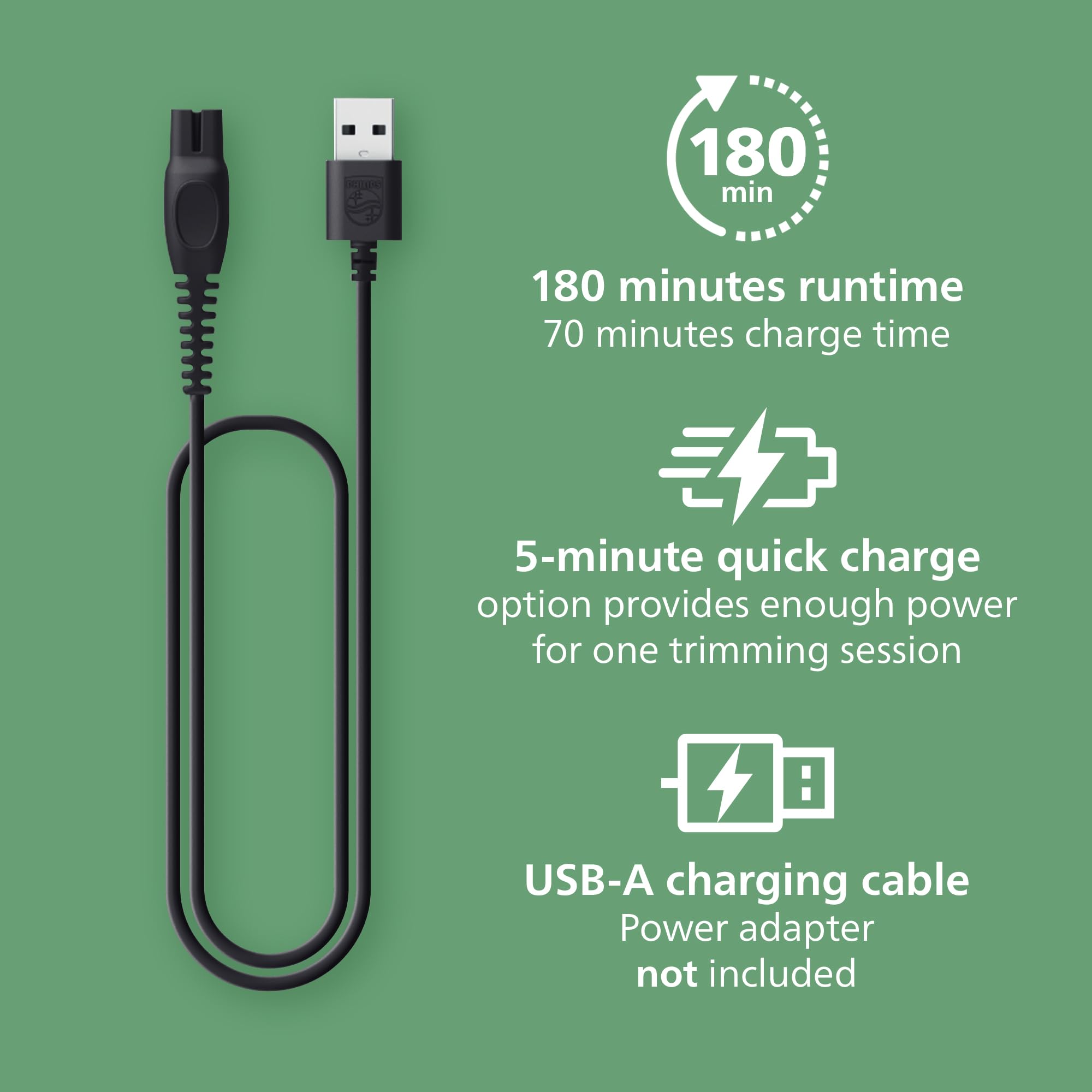 LONG-LASTING TRIMMING EXPERIENCE: powerful lithium-ion battery for up to 3 hours of runtime, with a 5-minute quick charge option; USB-A charging (power adapter not included)