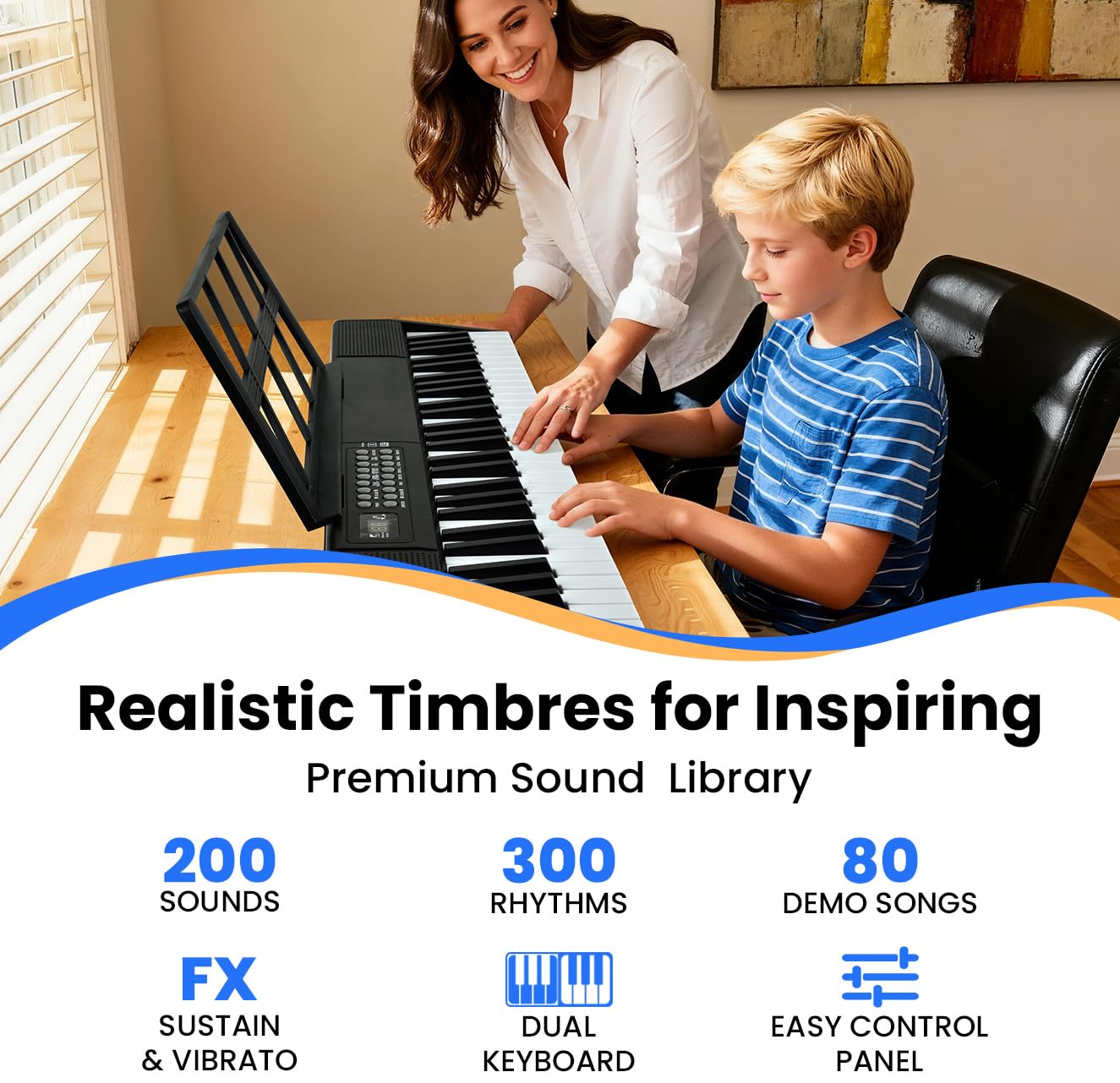 ๐๐ฎ๐ฅ๐ญ๐ข-๐ ๐ฎ๐ง๐๐ญ๐ข๐จ๐ง๐๐ฅ ๐๐๐ฌ๐ข๐ ๐ง๏ผThis electric piano features a dual-keyboard mode, equipped with 200 tones and 300 rhythms to fully inspire your musical creativity. Built-in auto chord and keyboard percussion offer engaging ways to explore the charm of arranging music. It also integrates a lesson mode (follow-along practice) and a record & playback function, making it suitable for daily skill improvement as well as performing your favorite songs.