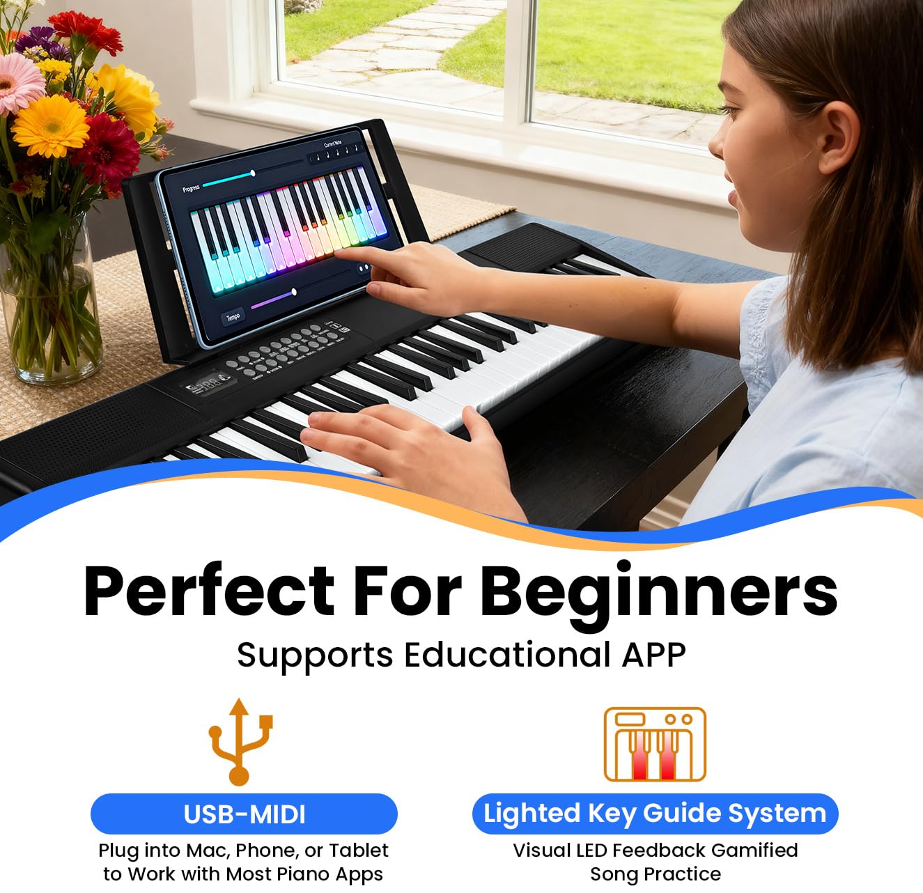 ๐ ๐ข๐ง๐ ๐๐ซ๐ญ๐ข๐ฉ ๐๐ฎ๐ข๐๐ - ๐๐ข๐ ๐ก๐ญ๐๐ ๐๐๐ฒ & ๐๐๐๐ ๐๐๐ฒ๐๐จ๐๐ซ๐๏ผBy connecting via MIDI to piano learning apps, its Lighted keys and included key stickers efficiently help beginners master scale positions. The system guides your fingers to learn songs step-by-step, offering instant feedbackโlike a patient teacher always at your side. This makes guided practice easy and enjoyable, significantly lowering the entry barrier, helping you quickly build confidence and enjoy the fun of playing.