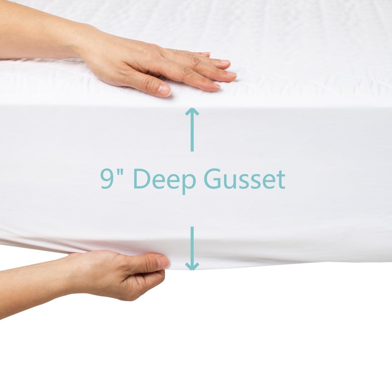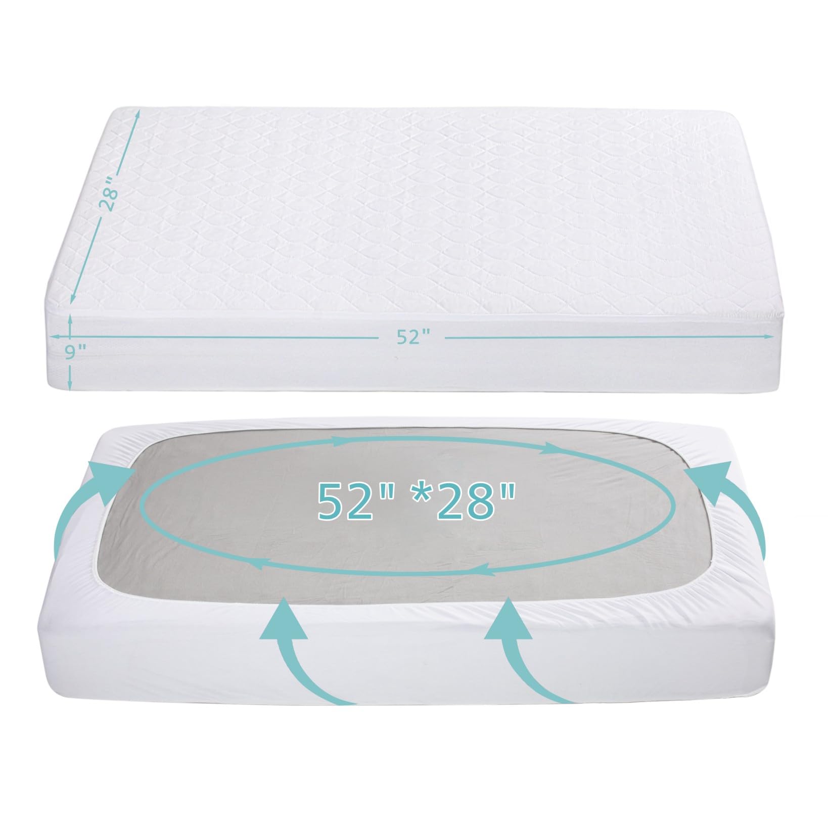 Secure Snug Fit: Measuring 52" x 28" x 9", this crib & toddler mattress protector has deep elastic pockets that perfectly fit mattresses up to 6 inches thick. The all-around elastic ensures a snug, secure fit, preventing slipping, bunching, or shifting.