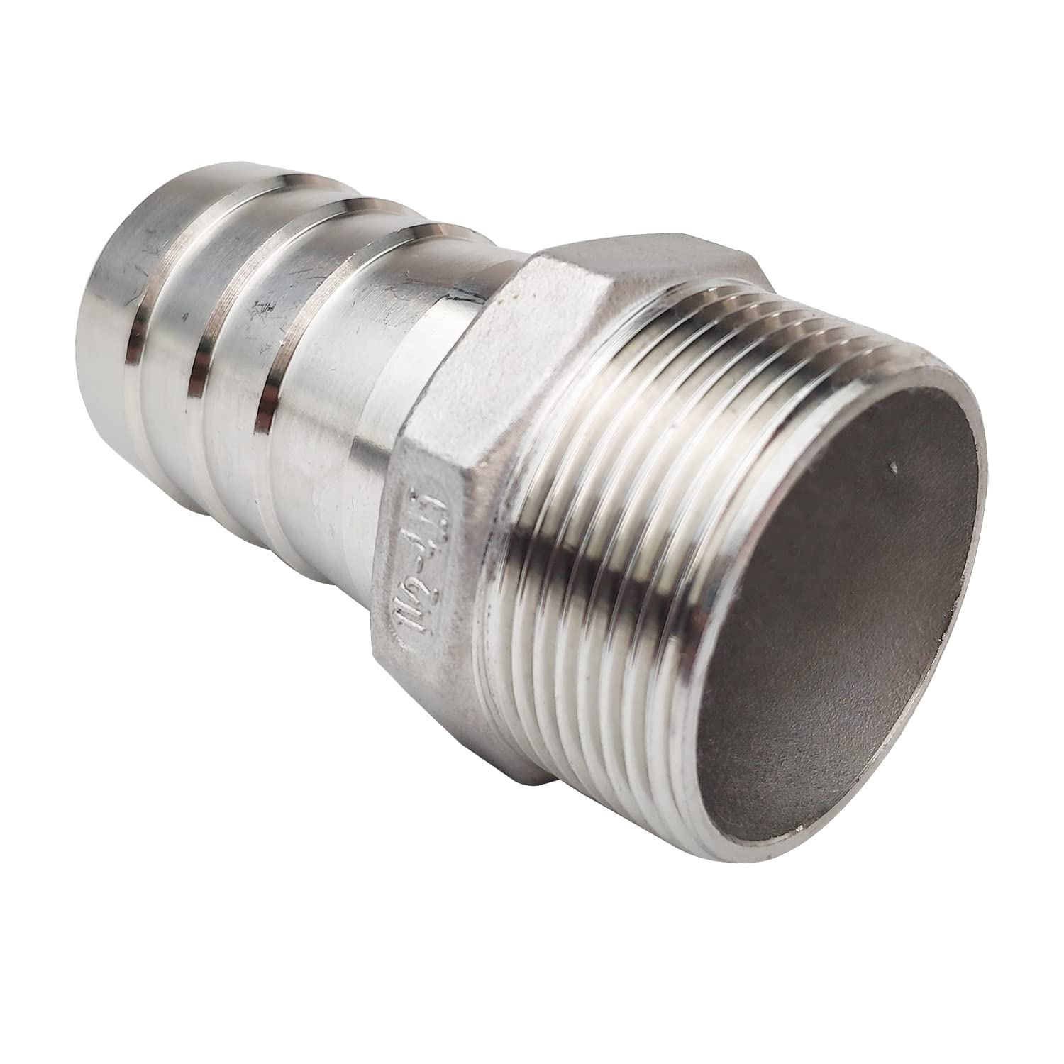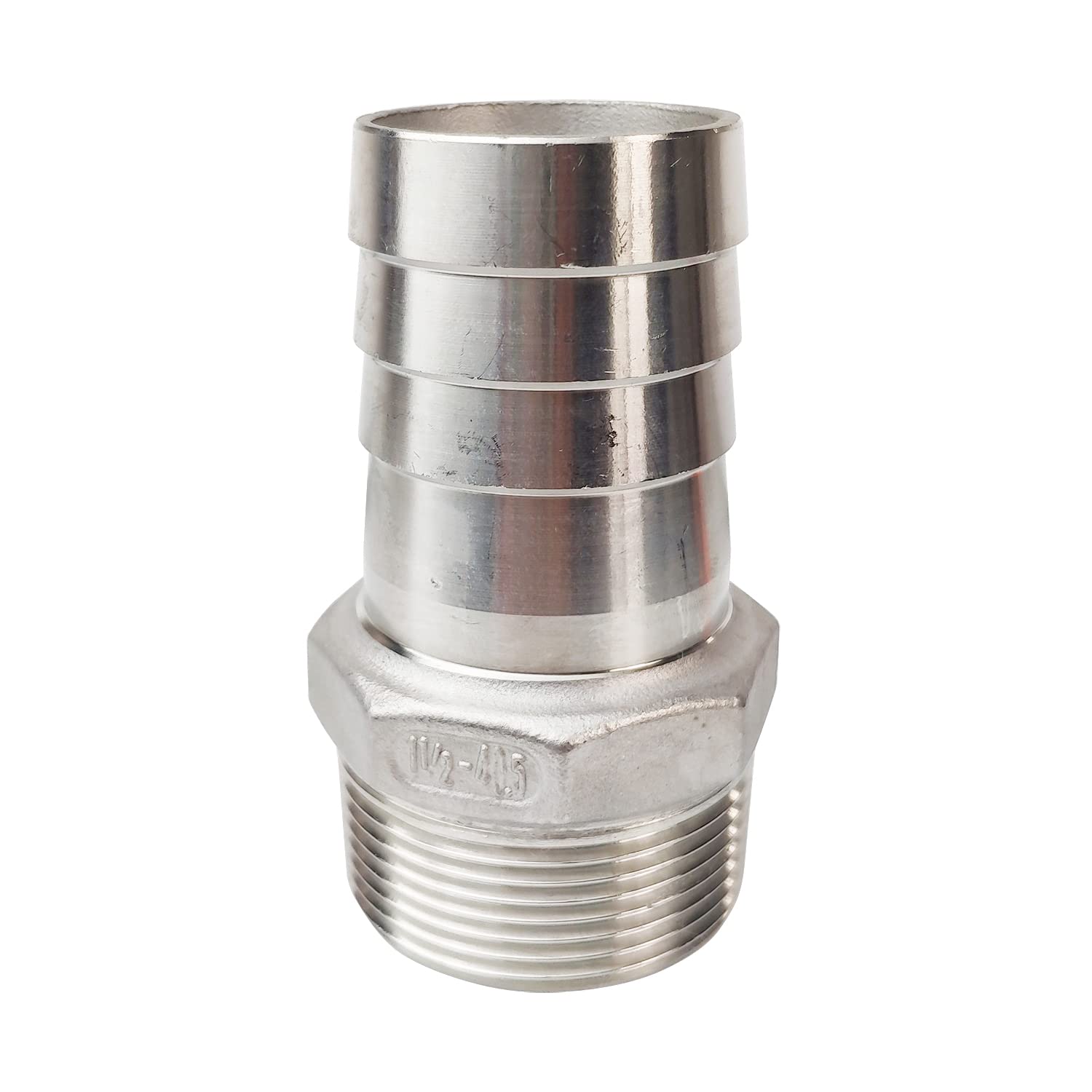 This hose fitting connector has a male end for connecting to threaded pipe conforming to National Pipe Thread (NPT) standards and a barbed fitting for connecting to a hose. The barbed fitting on one end creates a tight seal on flexible or semi-rigid hose when used with a hose clamp or crimp sleeve or ferrule (sold separately), and a male NPT connector on the other end connects to threaded pipe to form a tight, fixed connection Hose fittings are used in systems such as air compressors, automatic manufacturing operations, aircraft controls, and tire installation in industries including agriculture, mining, road construction, firefighting, and aviation Package: 1Pc Hose Tail Pipe Fitting