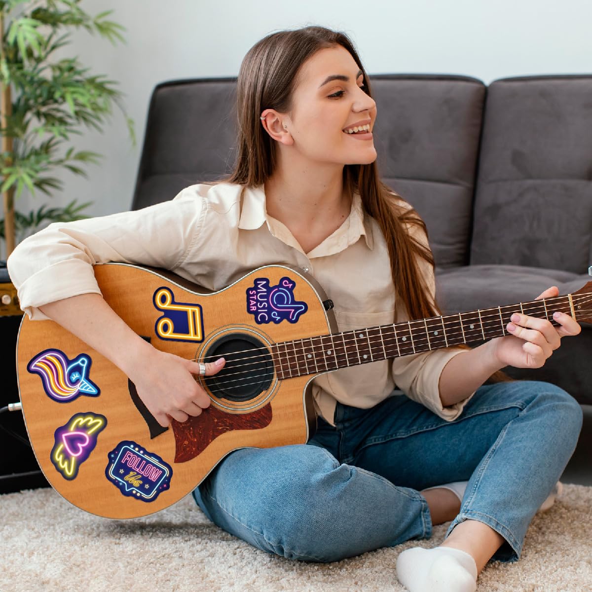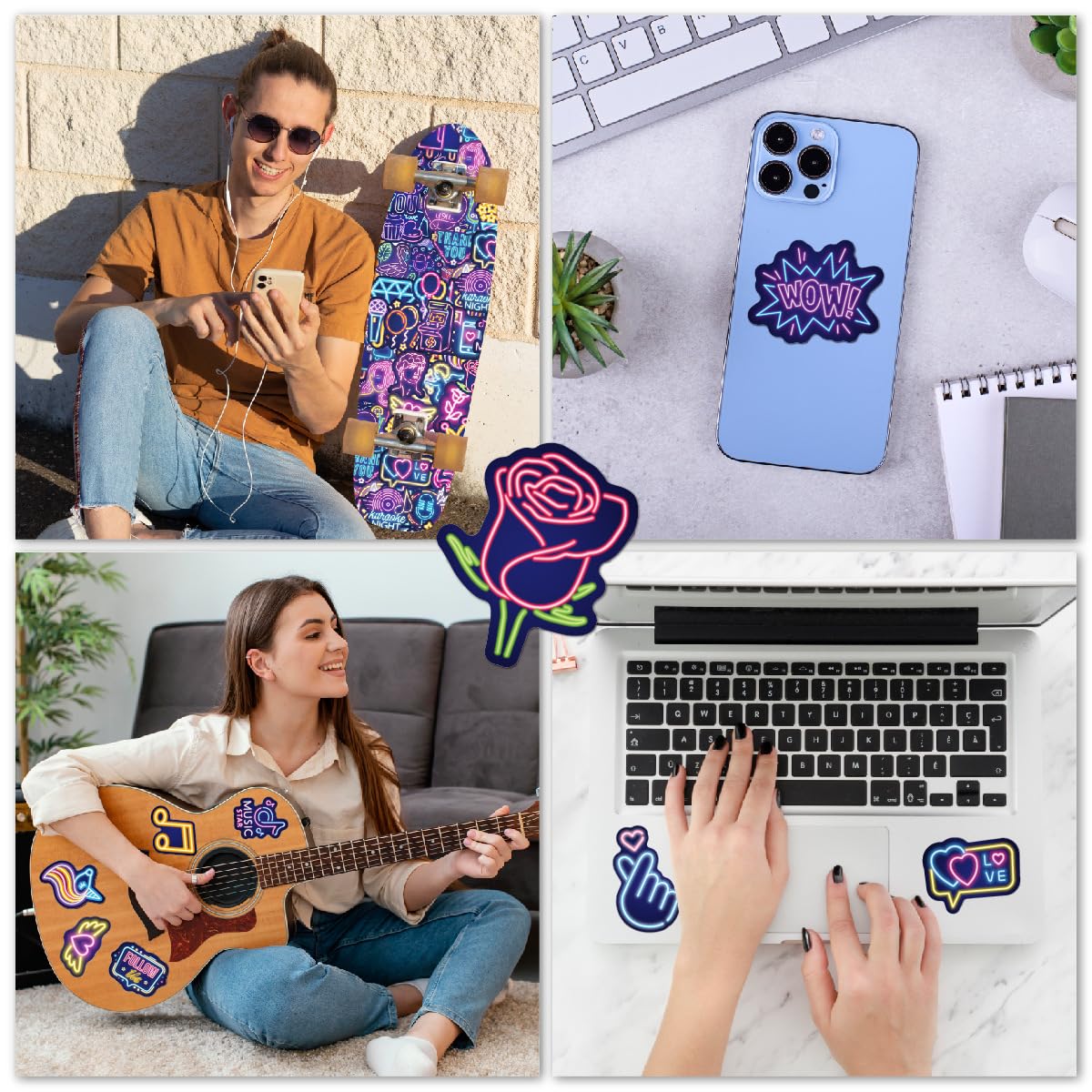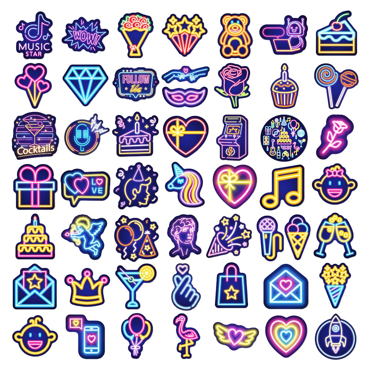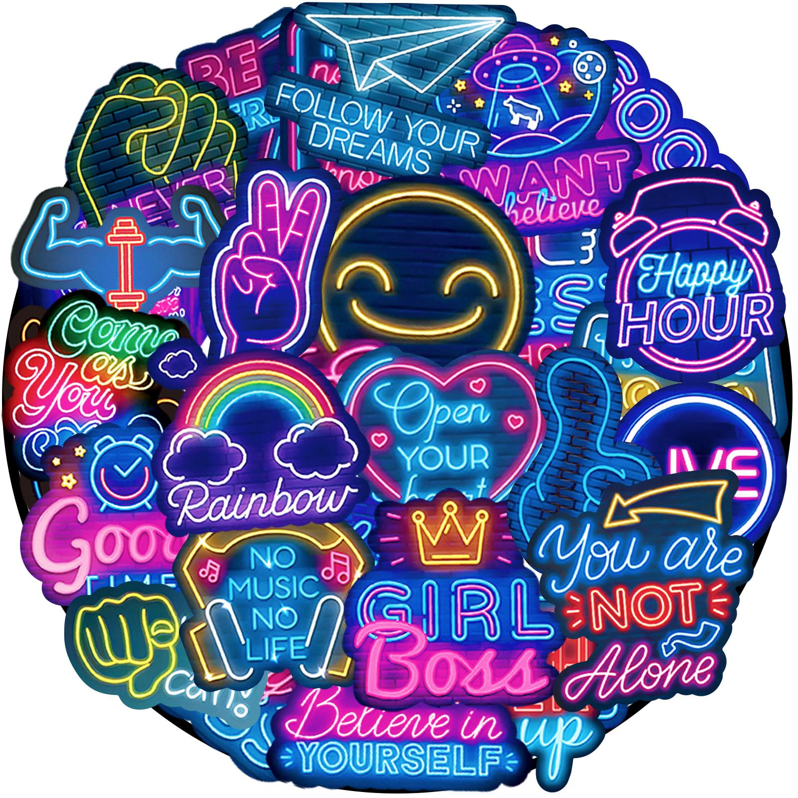 HIGH QUALITY: The cool neon vinyl stickers are made of high quality, eco-friendly, durable vinyl, with high-definition paint and waterproof adhesive which is easy to peer off and use.