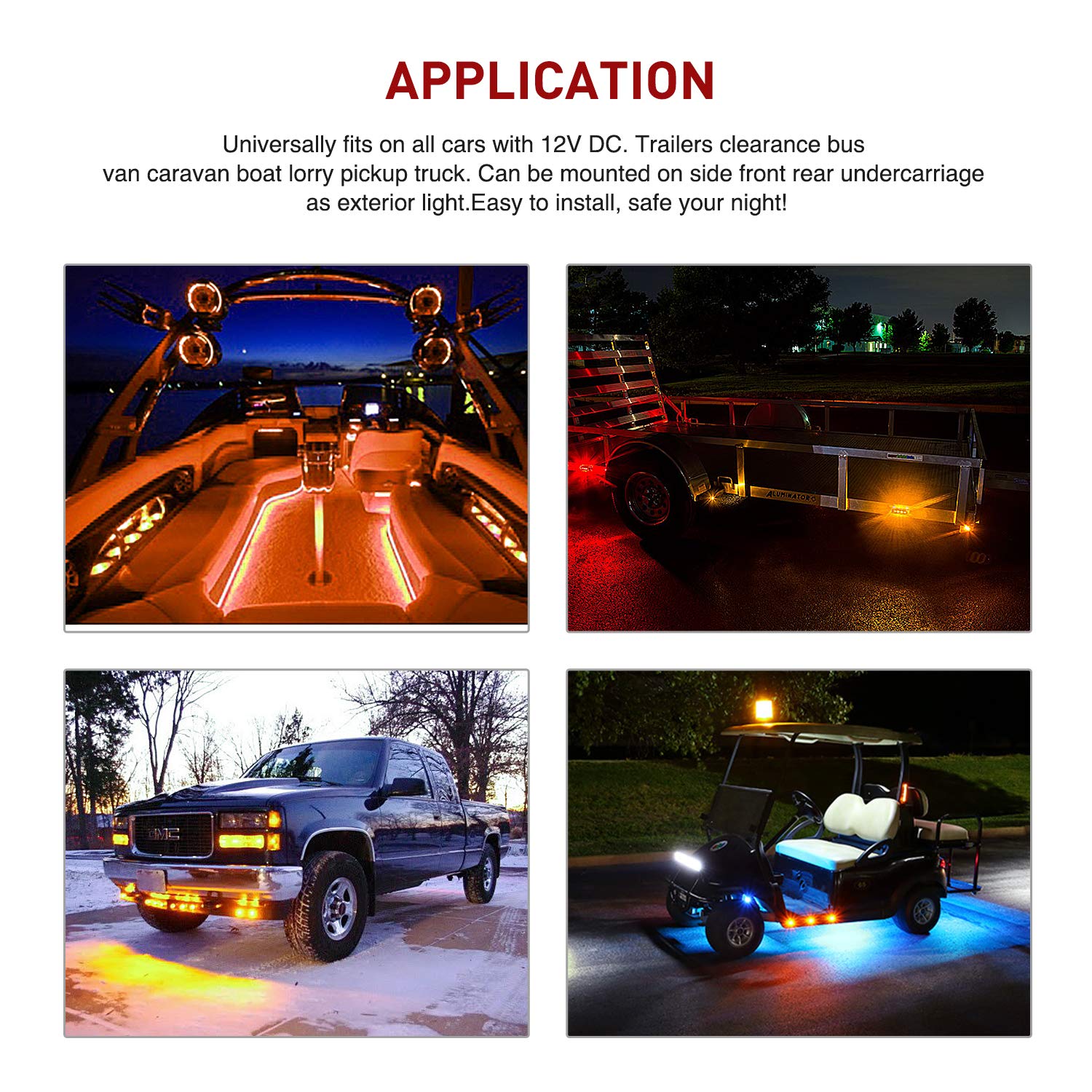 Wide Application: Universally fits on all cars with 12V DC Trailers clearance bus van caravan boat lorry pickup truck etc. Can be mounted on side front rear undercarriage function as clearance, side marker, turn signal light or trailer light
