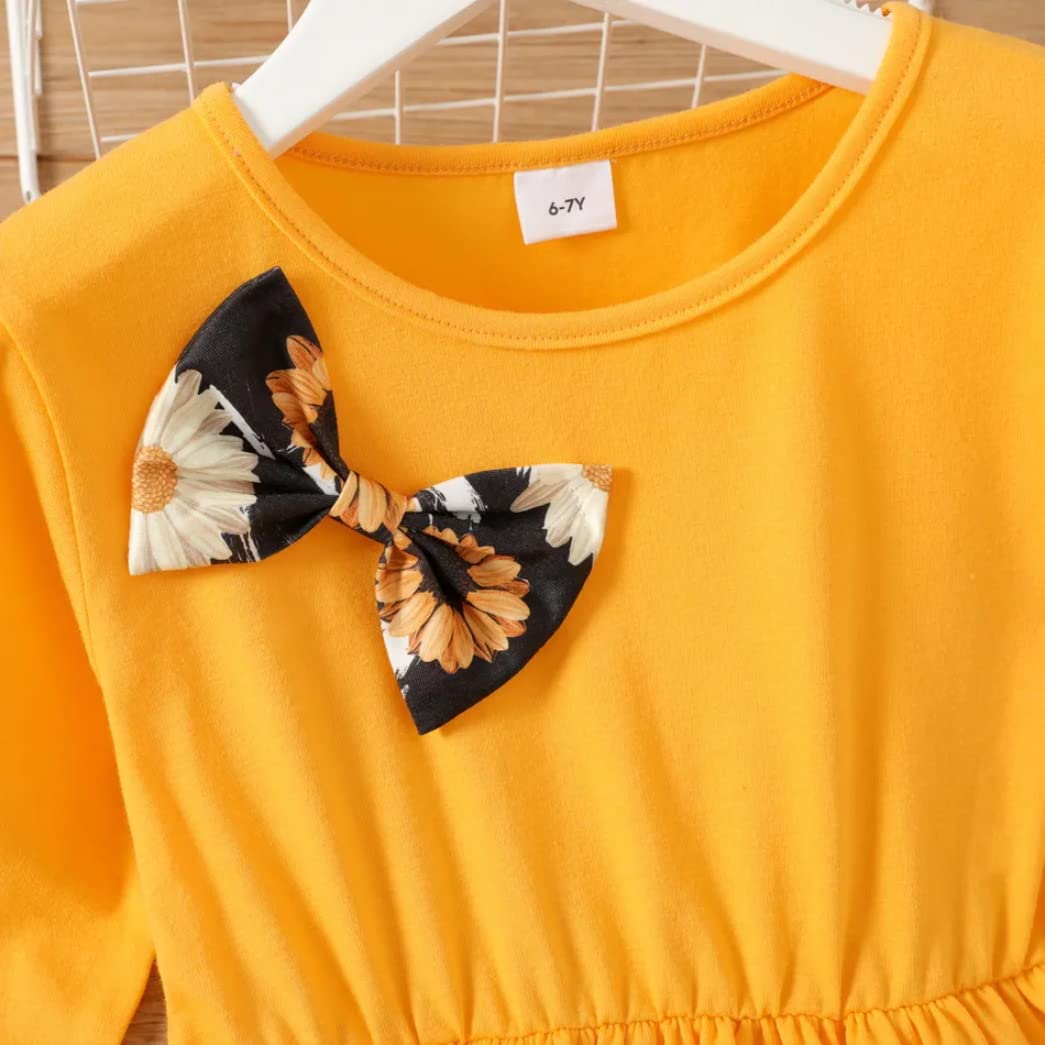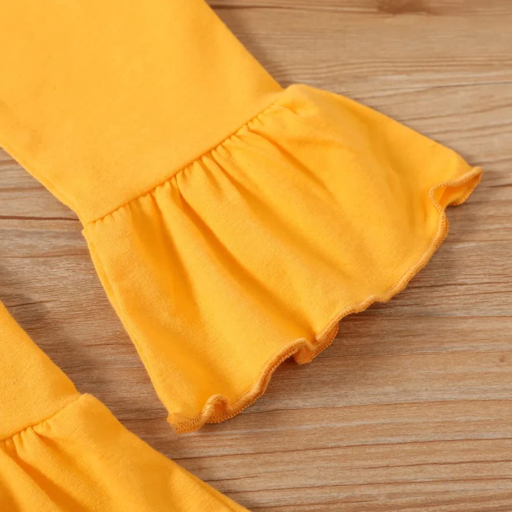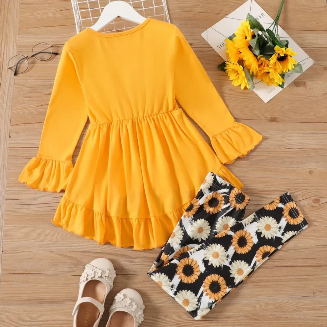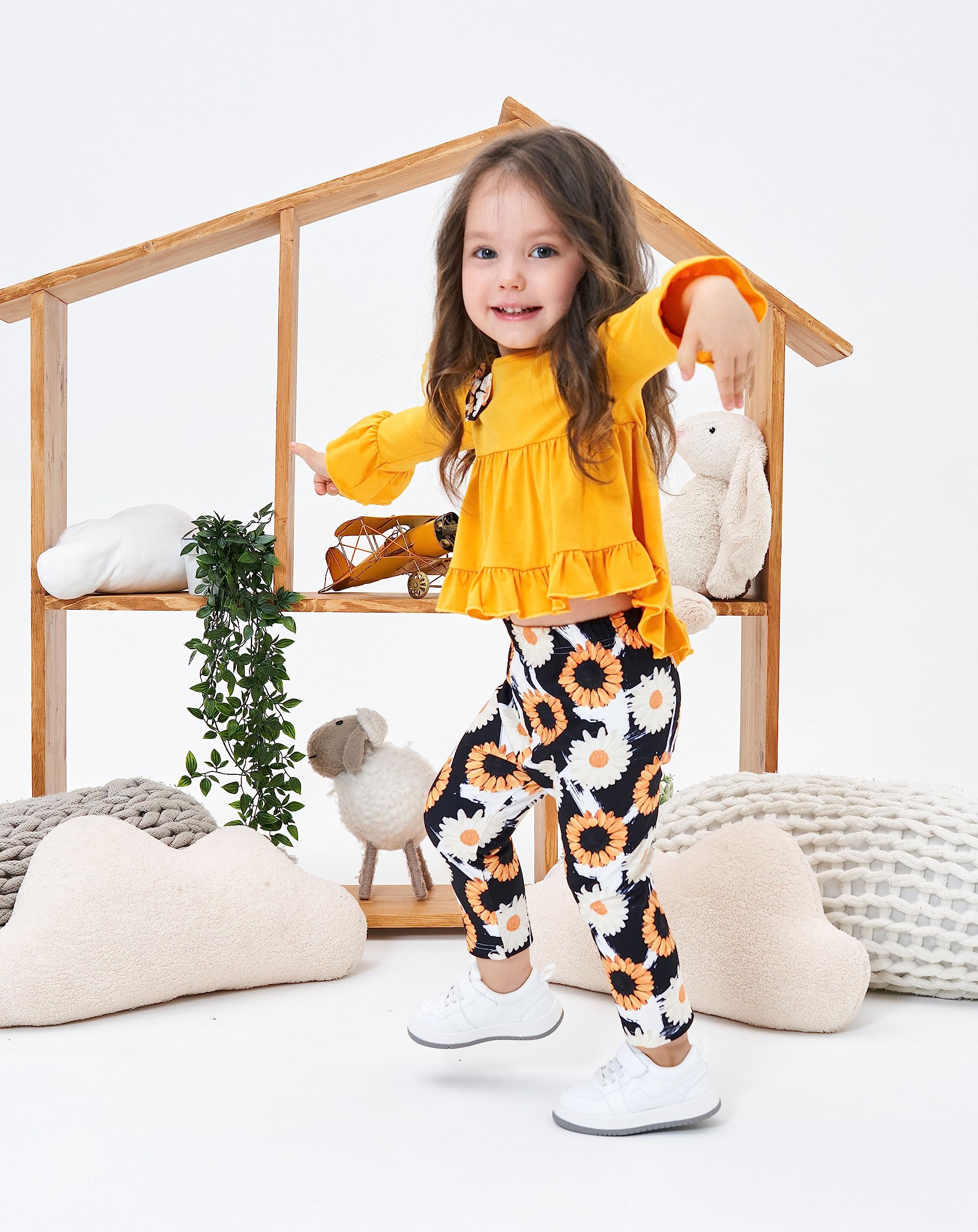 FASHION DESIGN: Ruffle and solid color top design with a cute bow, adorable and fashionable. We are sure your little girl will loves these Floral/Leopard/Sunflower print pant set and she won't want to take it off.