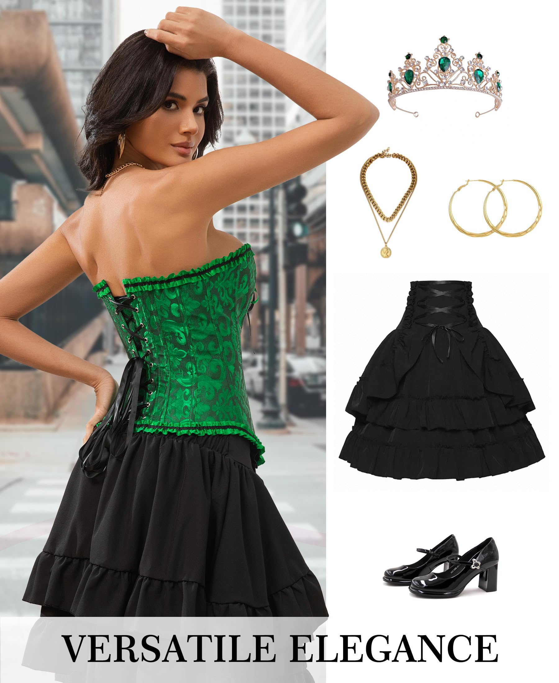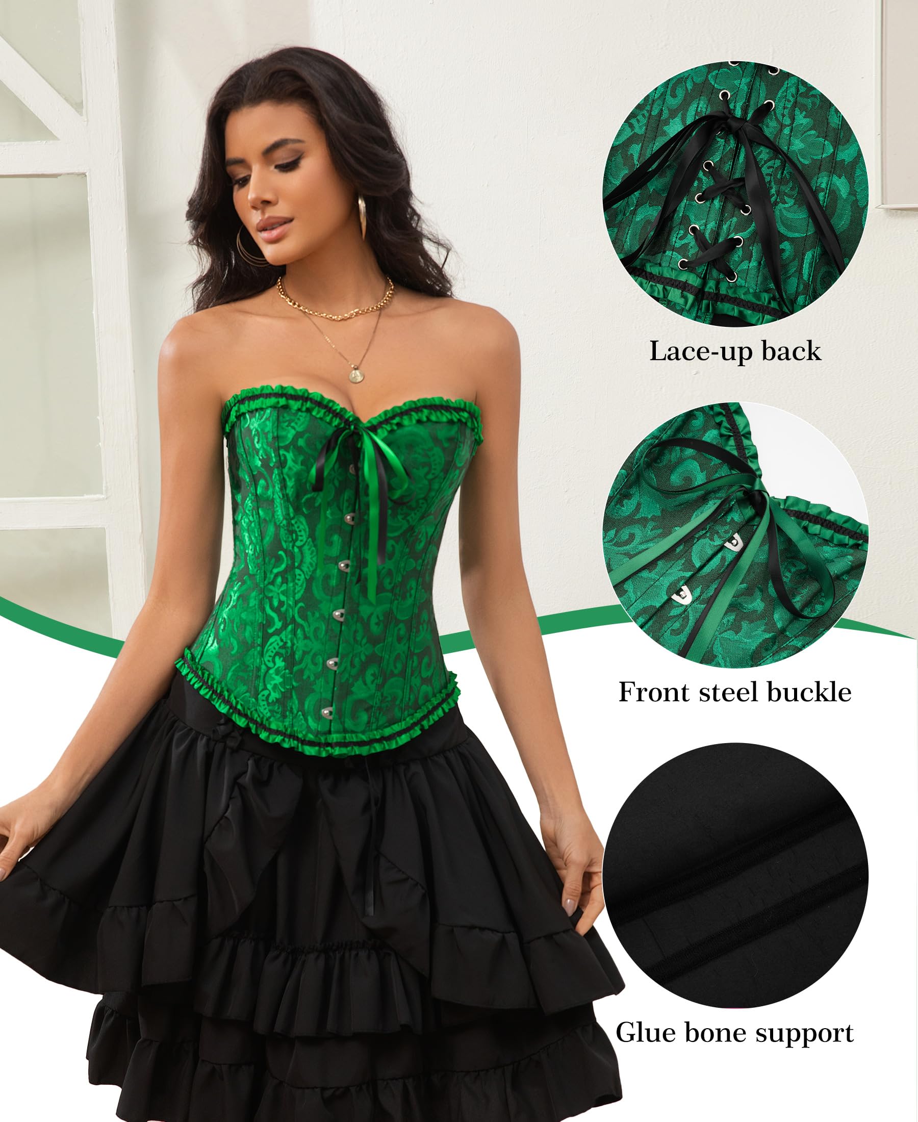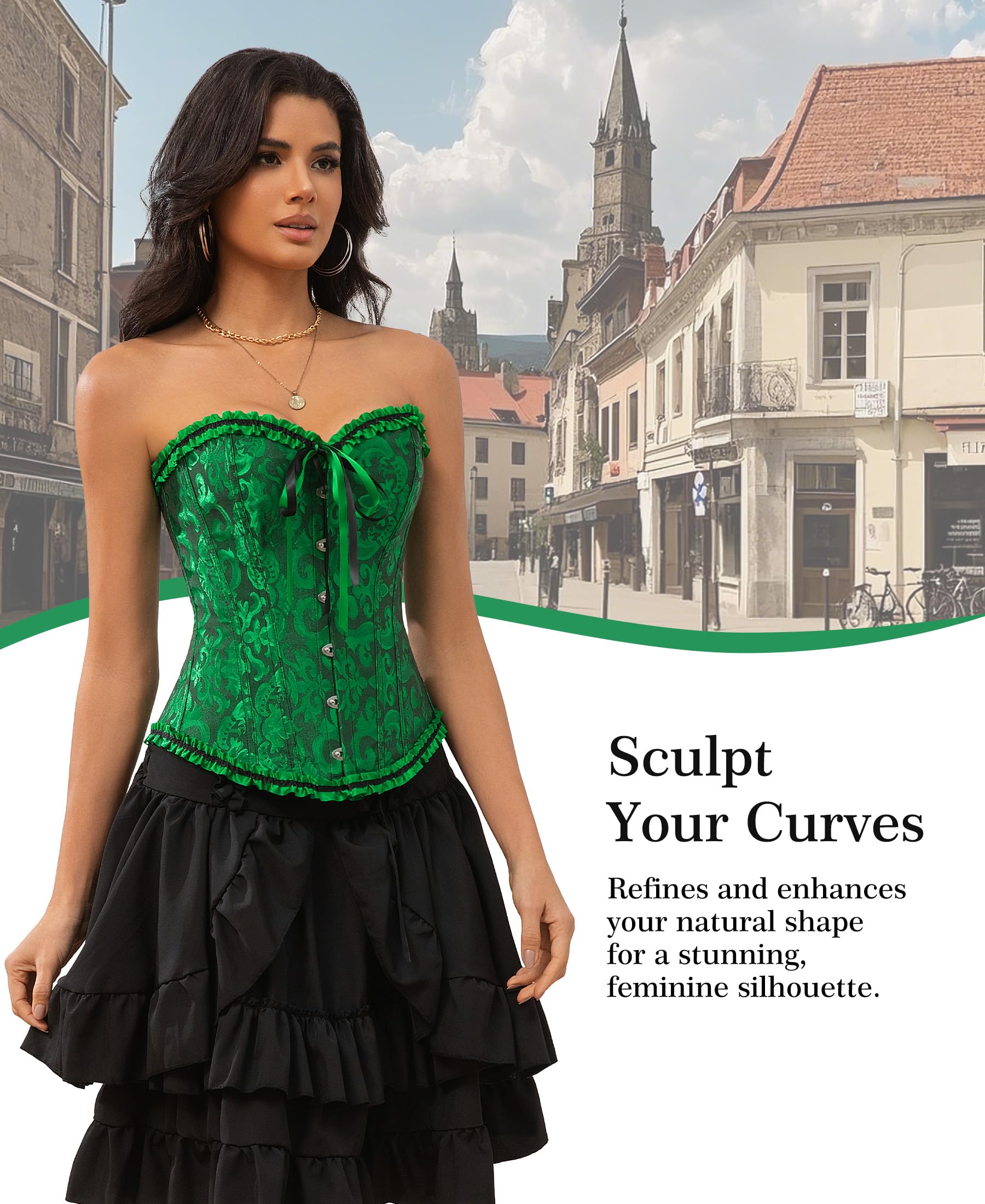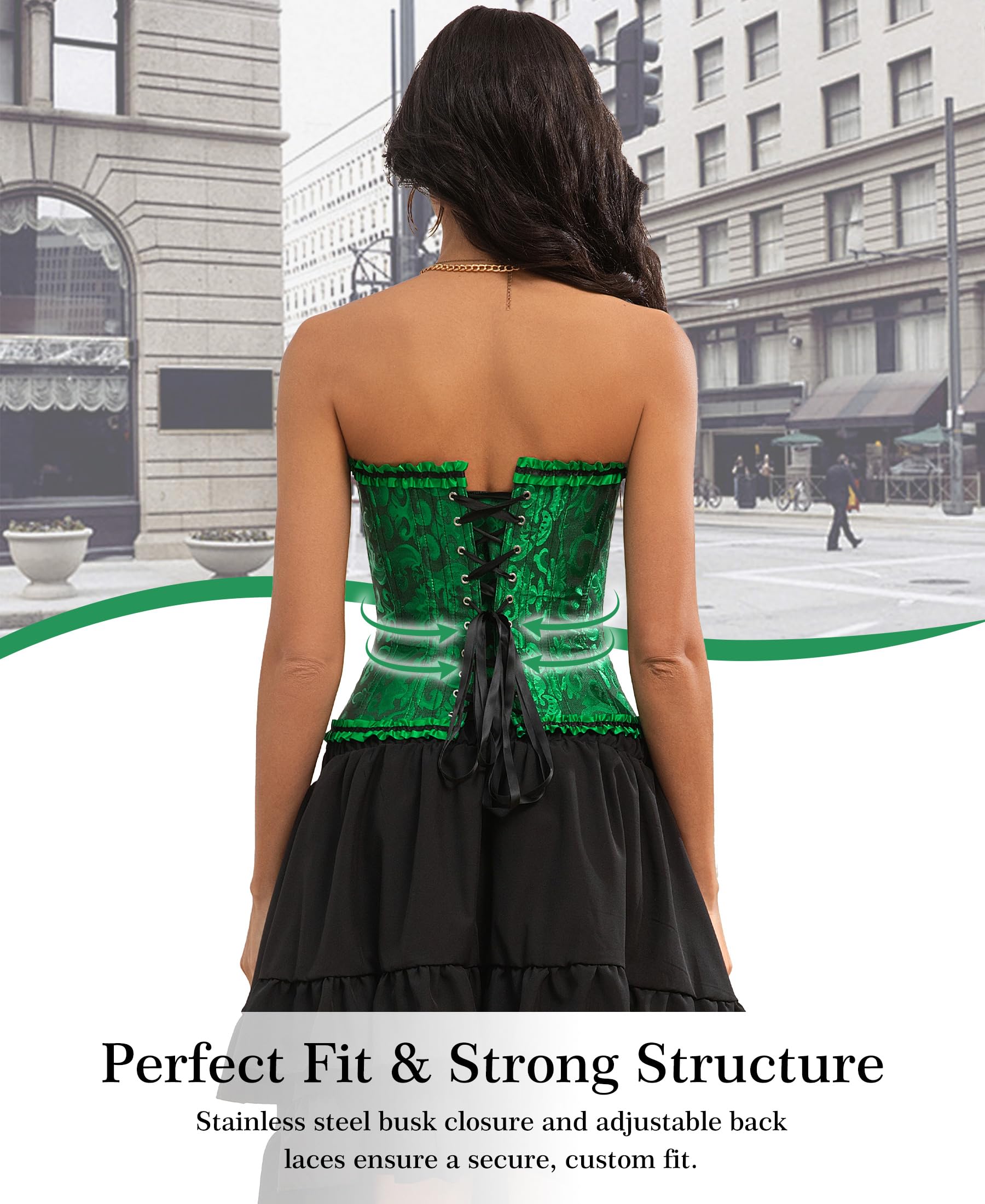 ALL DAY COMFORT: Our overbust corset top is a harmonious blend of comfort and elegance, made with materials that caress your form while ensuring freedom of movement. The waist corset unique 12 plastic bone structure is engineered to support an upright posture, reducing back strain. Designed for wearability from dawn until dusk, the waist cincher corset is the ideal everyday companion. Our lace corset top aligns with your body's needs and your heart's desires.