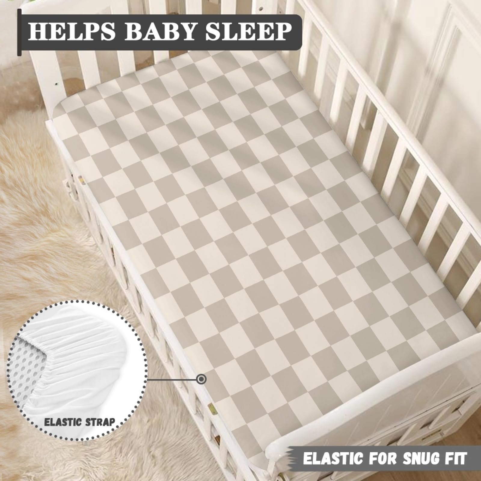Premium Material: These checkered fitted crib sheets are made of soft polyester, which are smooth to touch. The breathable and comfortable material provide babies a good sleeping or playing environment