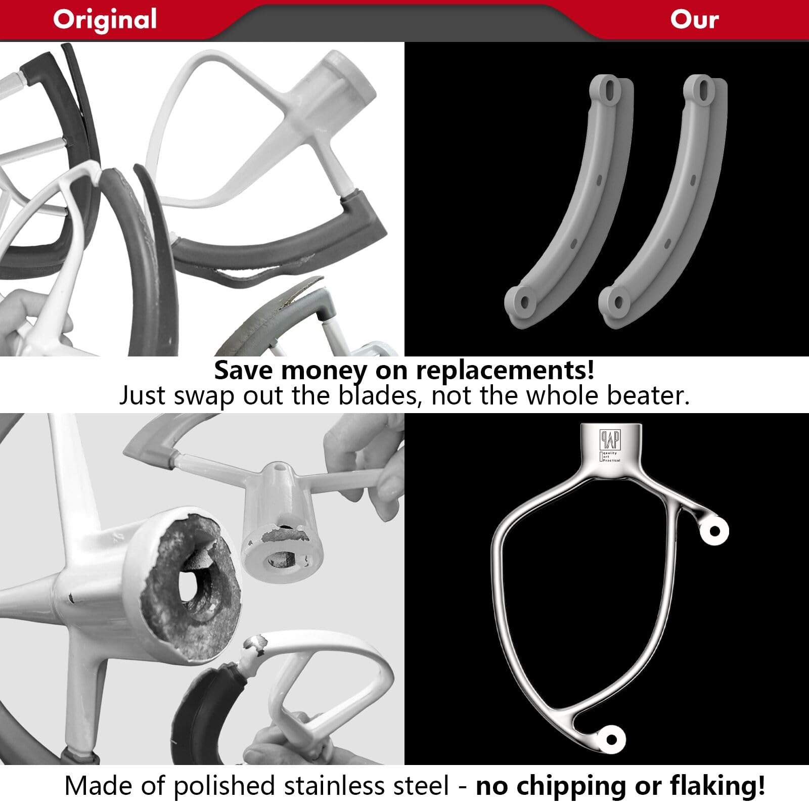 The Flex Edge Beater upgrades your Kitchen Aid 6qt Bowl-Lift Stand Mixer with Tulip-Shaped Bowl (models Professional 6000 HD Series, KSM6573, KSM6521) with durable stainless steel, replaceable silicone blades, and effortless mixing for all your baking needs.