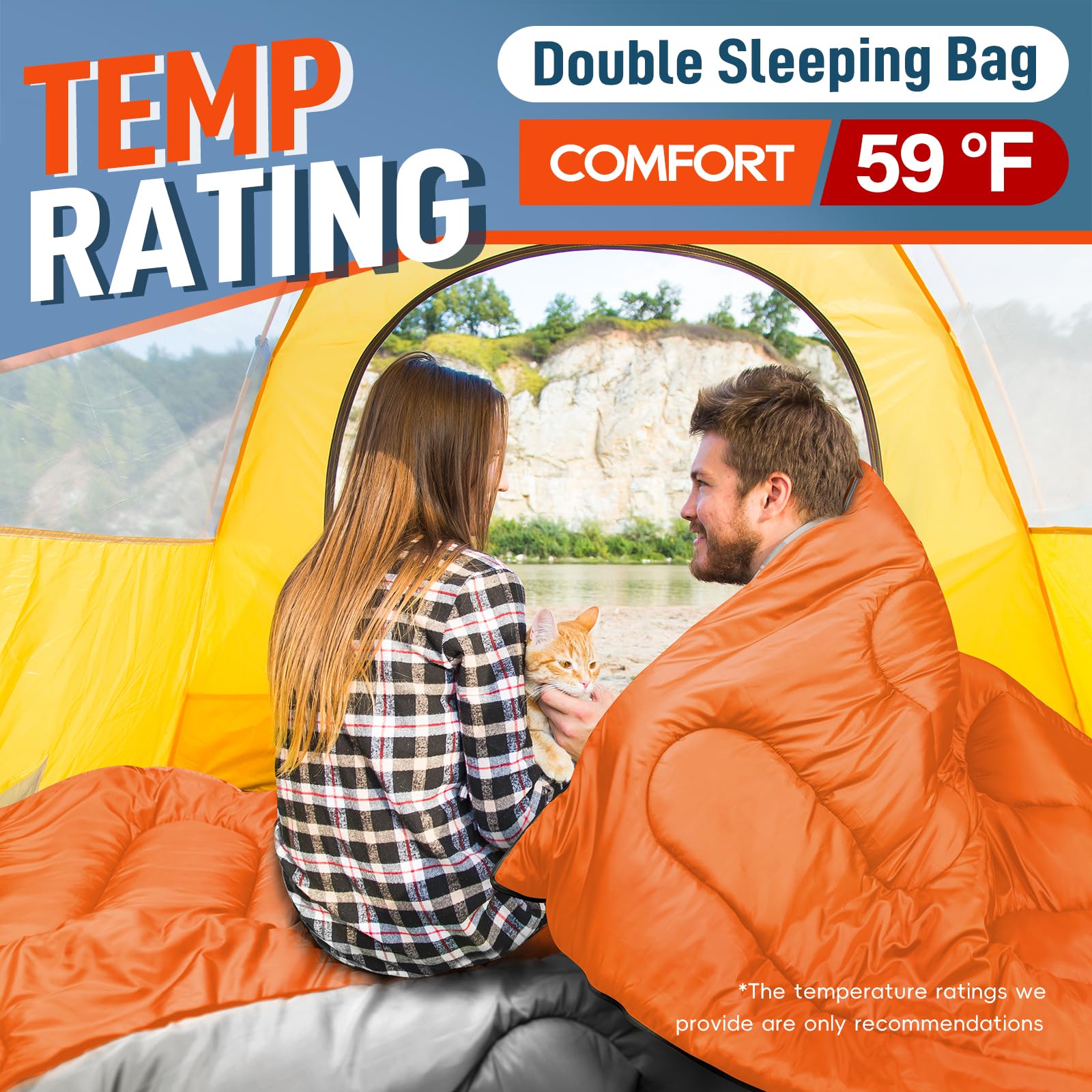 GOOD FOR COLD WEATHER : The rating you choose will depend on where you’ll be using it and what temperature you are comfortable sleeping in. For a comfortable night’s sleep consider the lowest outdoor temperature you’ll be sleeping in and ensure that temperature falls within the comfort range. The ‘extreme’ temperature rating is essentially ‘the survival temperature’. It is not the lowest temperature you will be comfortable in and we do not recommend using 2 person sleeping bag at this Temp