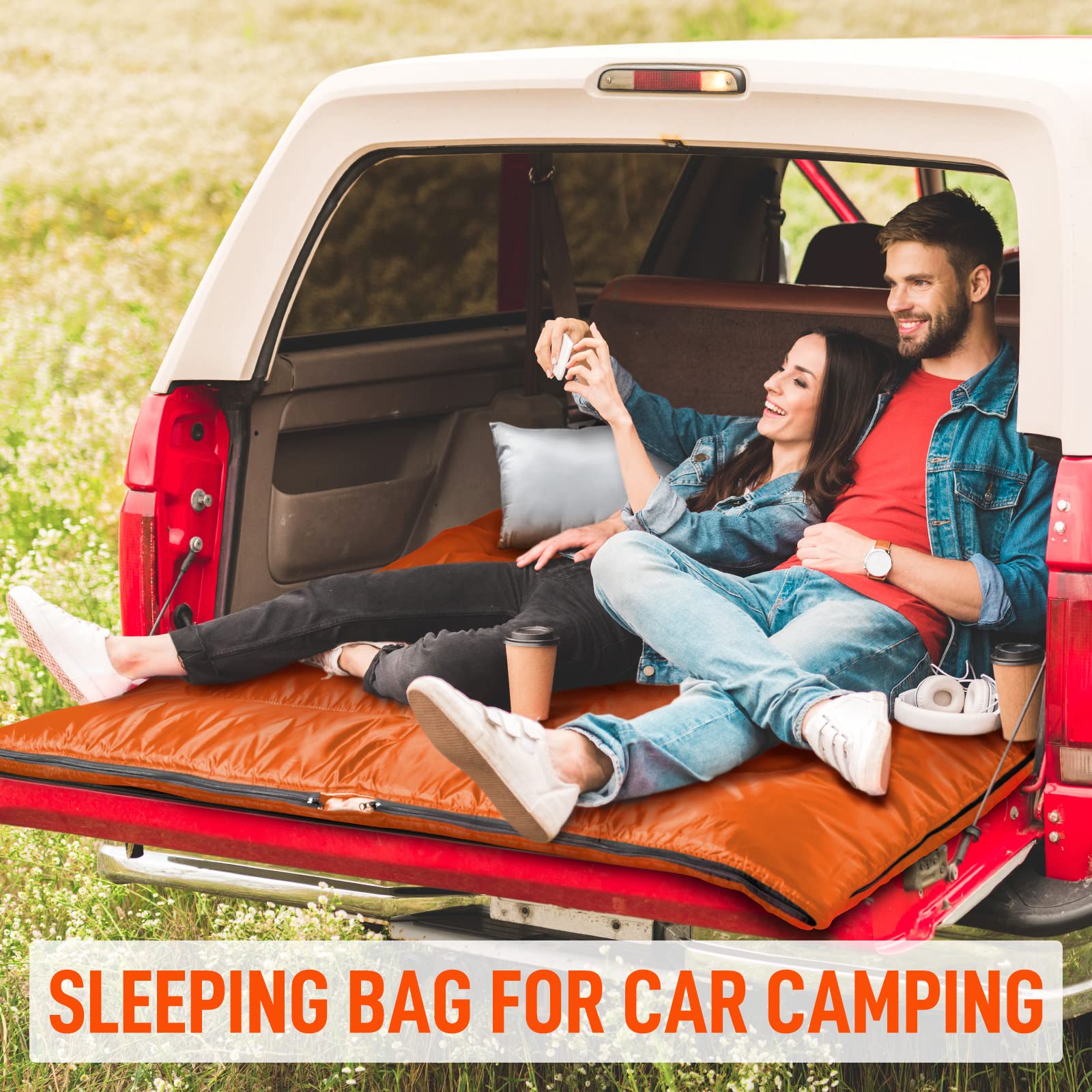 MULTIPLE USE SLEEPING BAG : Our double sleeping bag with 2 pillows can be separated into two individual sleeping bags or 2 queen size blankets thanks to the wraparound zippers. No matter how you use it, whether you go outdoor or use it indoor, this adult sleeping bag will warm your tour and give you a good night sleep experience