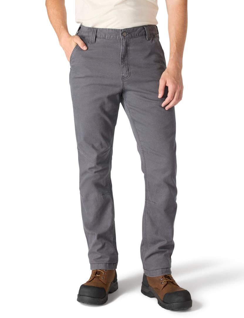 Description These men's work jeans have all the durability you'd expect from a pair of Carhartt pants but with extra flexibility too. The heavyweight denim has some stretch giving you easy movement on the job. The straight traditional fit is cut closer through the seat and thigh with a tapered leg. 12-ounce, 85% cotton / 14% polyester / 1% spandex denim. Built to move with Rugged Flex® stretch technology. Straight Fit: Closer to the body fit through the seat and thigh with room to move and a tapered leg opening. Strong sewn-on-seam belt loops. Front and back pockets. Imported
