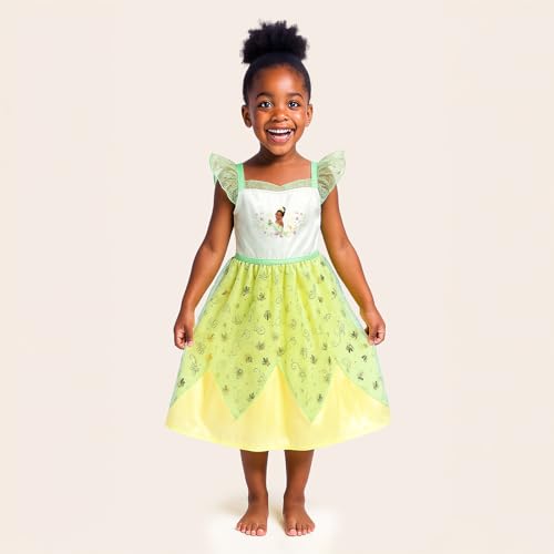 Description Send your little girl off to sleep to dream of becoming a mermaid, dancing with a prince, and going on adventures in the Disney Girlsβ Princess Fantasy nightgown. Your little one will love pretending to be their favorite Disney princess as they sleep and play in this cute, fun, and functional princess gown. Perfect for naptime or amazingly fun princess dress-up, this dress will be the new favorite gown in your girlβs pajama and dress-up clothes. Your little girl can pretend to be any Disney princess from Moana to Snow White in these adorable pajamas. Available in multiple styles and sizes 2Tβ8, each gorgeous nightgown features bright, rich colors and lovely graphics of much-beloved Disney characters. Fancy sleeves, a sparkly overlay, and ruffles make this a true princess gown. This pull-on nightshirt is made from supersoft 100% polyester and is easy to wear. A gentle-cycle wash and low-temperature tumble dry are all that is needed to keep this nightgown looking amazing. This officially licensed Disney product is made with high-quality materials and safety and comfort in mind. To ensure maximum comfort and safety, please choose the right size for your child to avoid clothing that is too long or too loose. These pajamas are manufactured in accordance with all clothing safety standards and are flame-resistant. Let your child put on these fun pajamas and live out their adventures while they sleep or play.