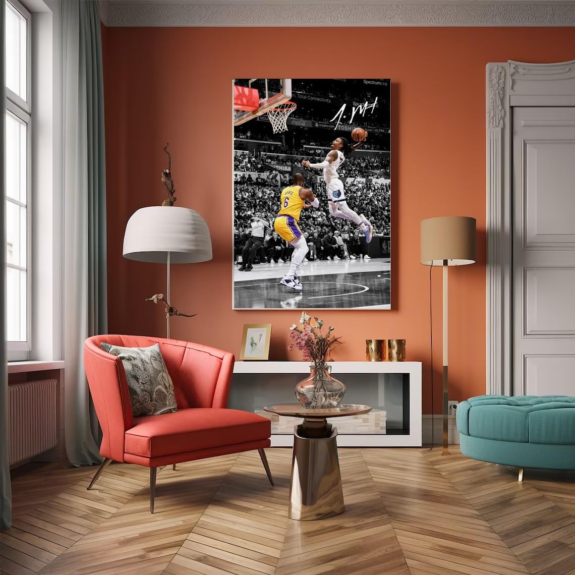 Canvas Rolls: If You Choose Canvas Rolls, Please Note That We Will Roll The Canvas And Ship It To You, It Will Not Appear On The Frame. The Image Is The Effect Of Installing The Frame. High-Quality Canvas Hd Pictures, Durable And Waterproof. Ja Morant Signed Poster The Vivid Scenes Will Illuminate Your Walls. Can Make Your House Look Vibrant And Creative.