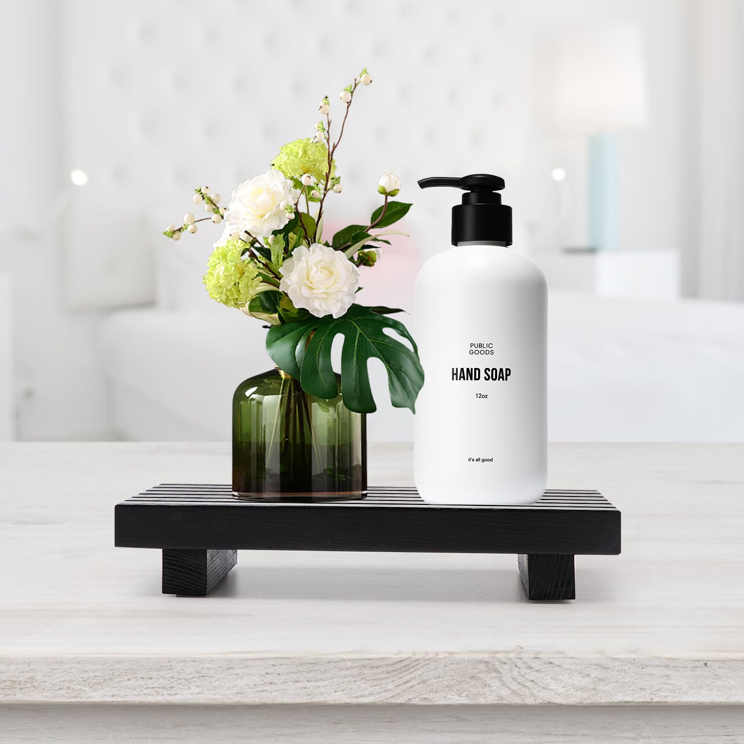 MULTIFUNCTION WOOD RISER: The wooden tray decor will match well with the items you put on it, such as skincare, dispenser, plants, candles, mouthwash, perfumes, flower pot, jewelry, etc; This wood soap dispenser tray is very beautiful and keeps things off the counter. Great as bathroom decor, kitchen counter decor, sink tray, vanity decor, soap dispenser tray.