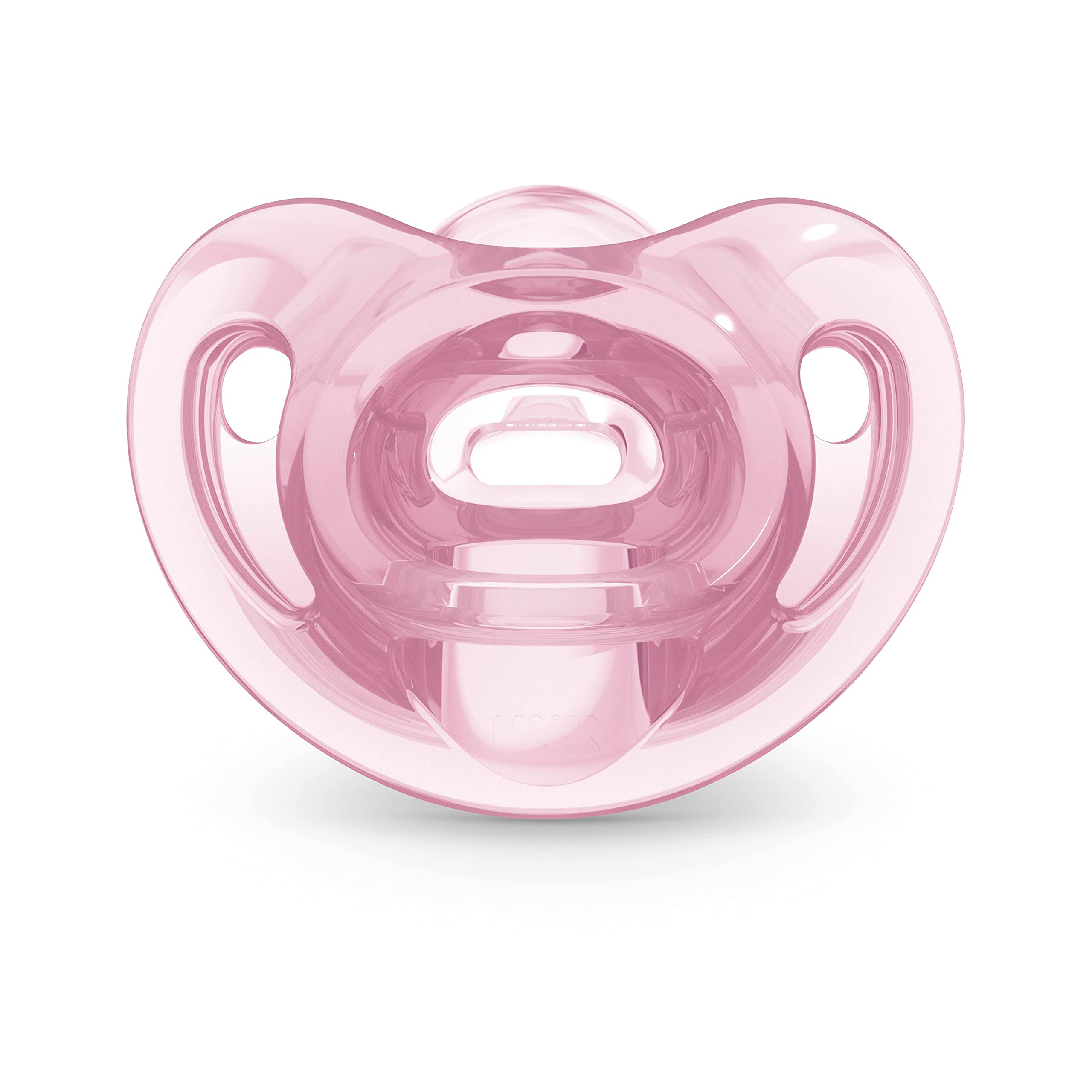 Having a difficult time finding the right pacifier for your baby? NUK sensitive pacifiers feature the original NUK orthodontic nipple shape. Invented over 60 years ago by pediatric dentists and doctors, the NUK pacifier is modeled after the natural shape of mom's nipple while breastfeeding. This makes for an easy transition from breast to pacifier and back. The NUK heart-shaped shield fits perfectly under baby's nose for easier breathing and prevents irritation. Now all NUK pacifiers are available in a reusable storage case that allows for easy cleaning in the microwave. Featuring a 100% silicone design that gently contours to baby's face, preventing marks on their sensitive skin, This pack of 3 sensitive orthodontic pacifiers is ideal for your baby aged 0-6 months. (Based on market research, 2017, tested with 307 Pacifier users).
