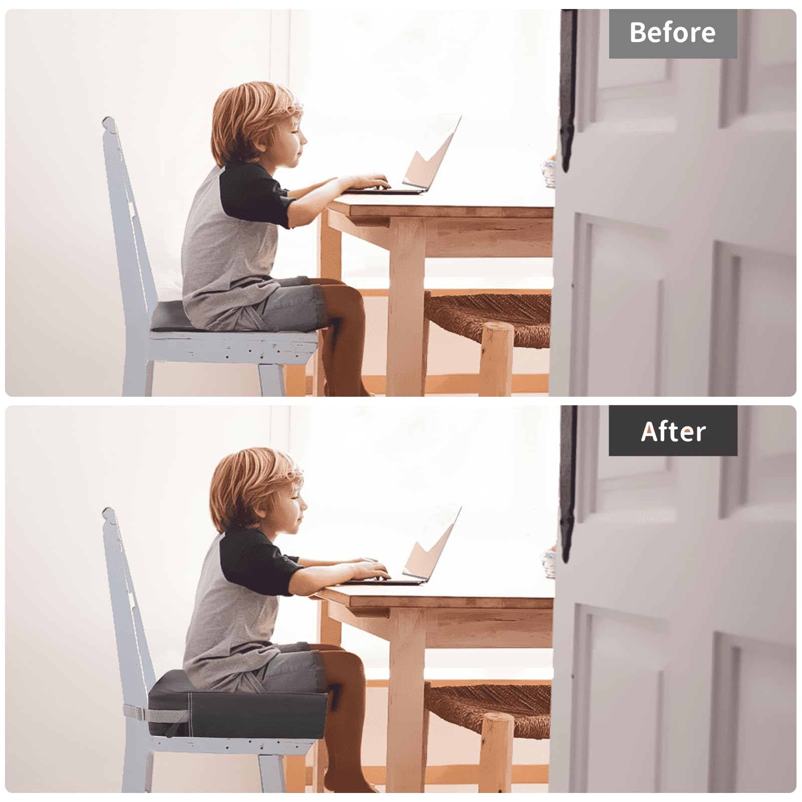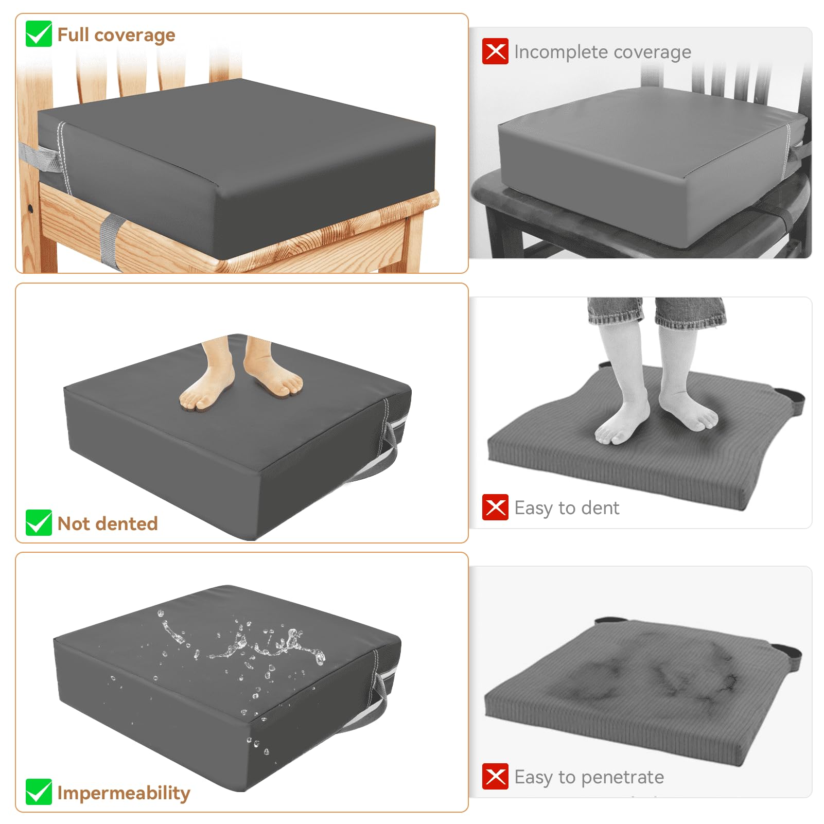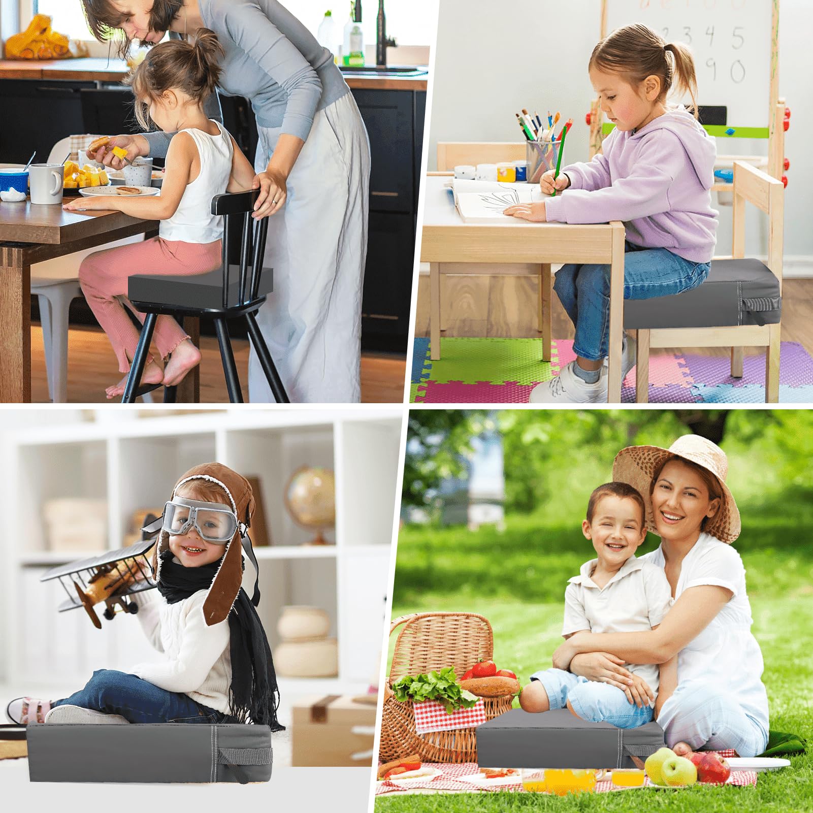 【IMPROVED DESIGN】Compared with other old models on the market, our toddler booster seat has thoughtfully increased the width on the seat cushion, covering the entire surface of the chair more comprehensively; Booster seat adopts a solid dark grey, which will meet children's interest