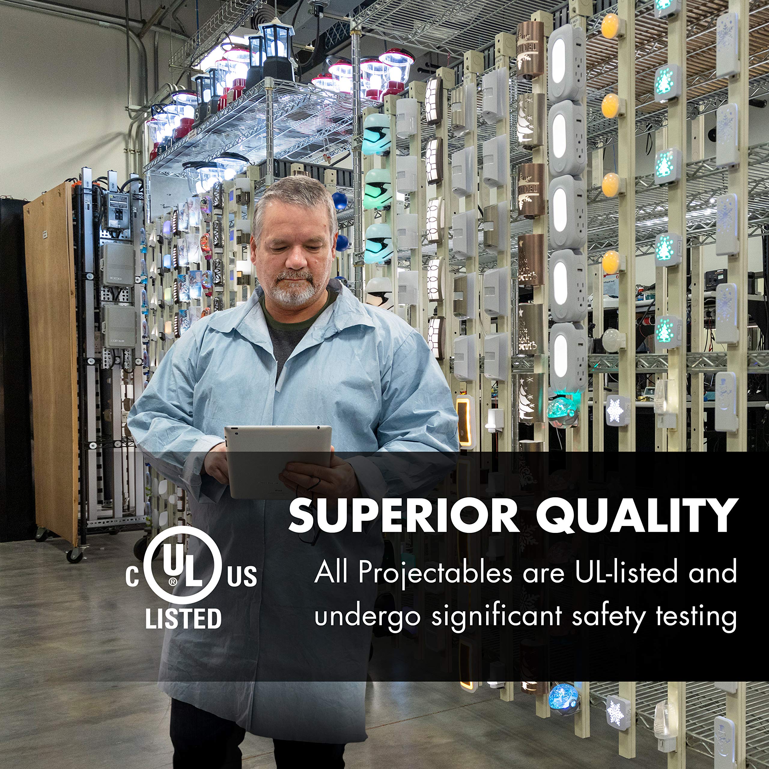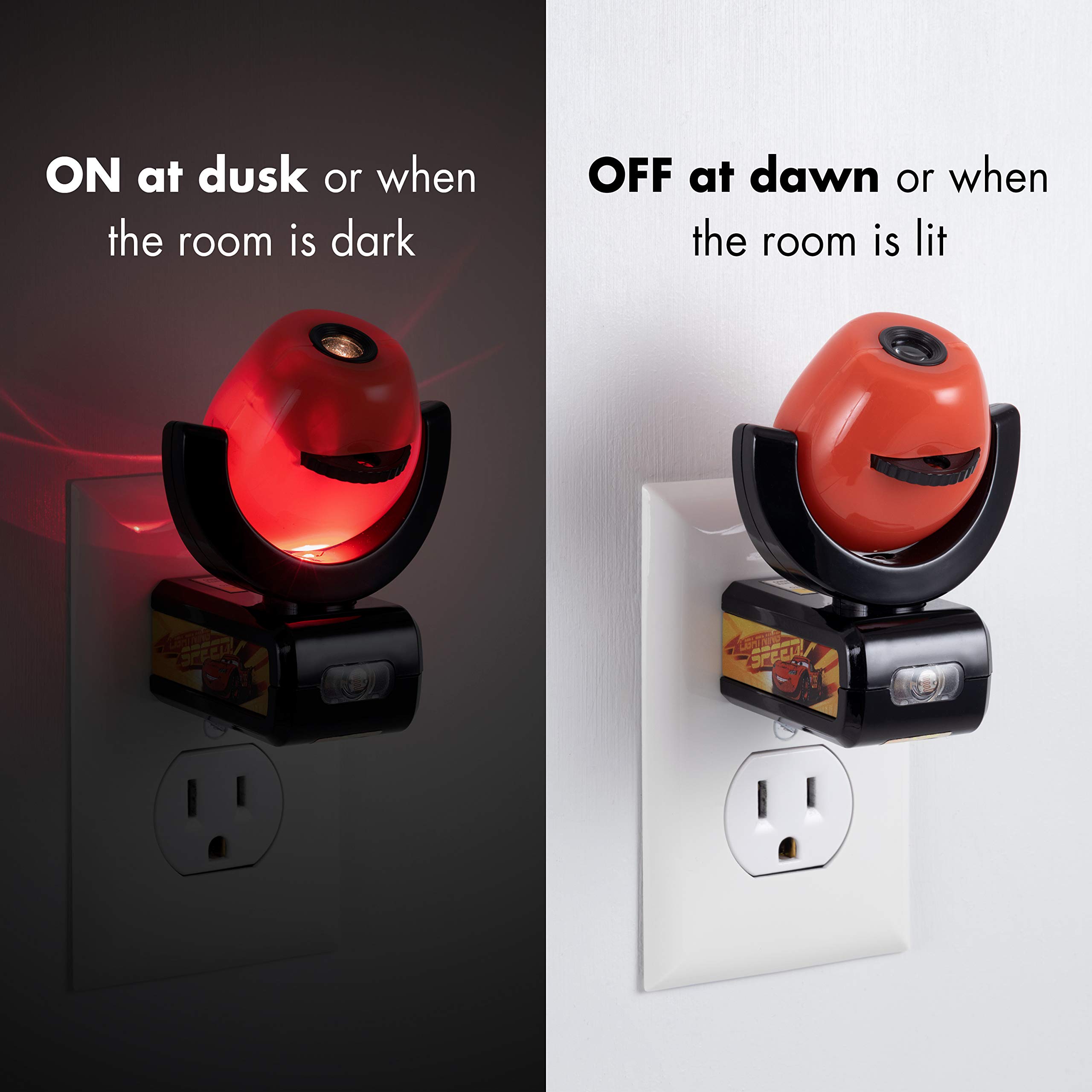 Transform your child's room with this Projectables Night Light featuring Disney/Pixar's Cars! The Projectables LED night light provides a soothing guide light while projecting one of six Cars images on the wall, ceiling, or floor. It uses light-sensing technology to turn on at dusk and off at dawn. Long-life, energy-efficient LEDs are cool to the touch making this night light safe for any room in your home. It's perfect for kids of all ages.