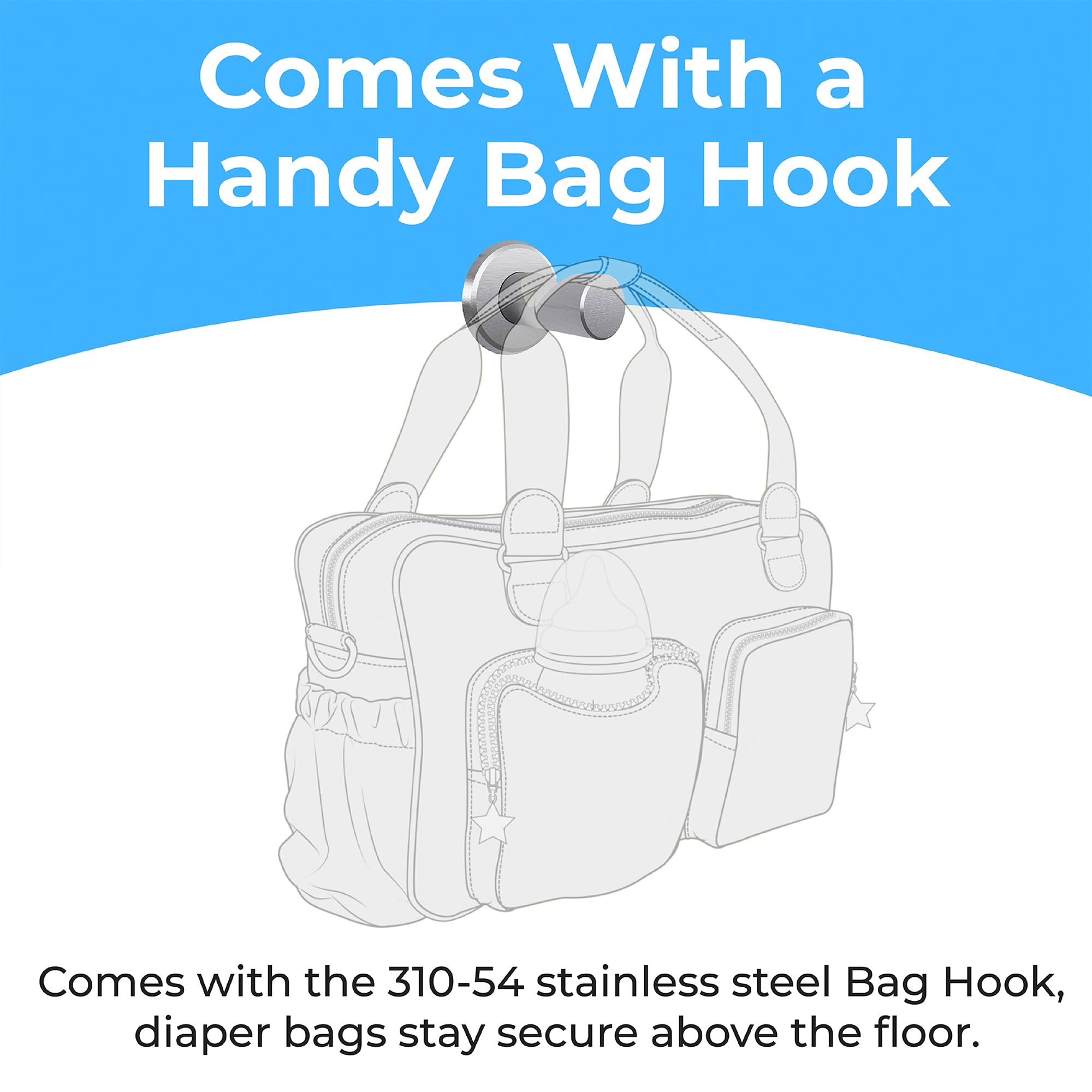 Convenient Diaper Bag Access: Includes a wall-mounted, stainless steel bag hook, providing easy and safe access to diaper bags without compromising space or safety.