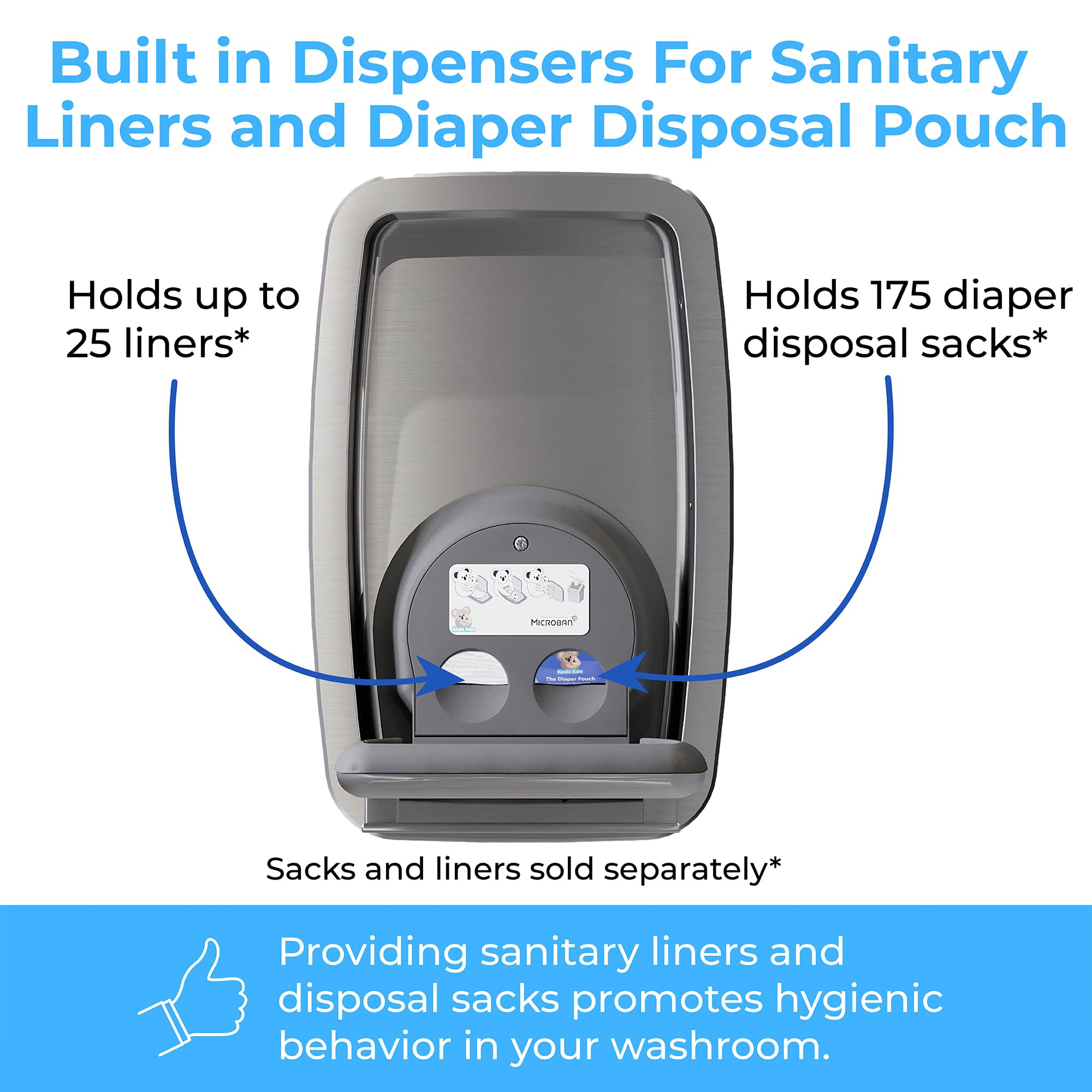 Innovative Dispenser System: Equipped with an easy-to-use dual-cavity dispenser for sanitary bed liners and diaper disposal bags, enhancing convenience and hygiene.
