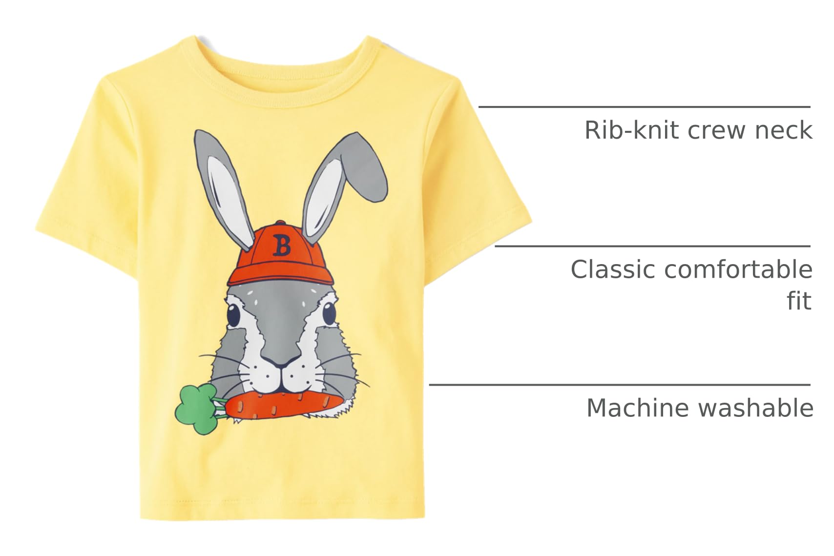 DESIGN β Features short sleeves, rib-knit crew neck and rabbit with carrot graphic design at front