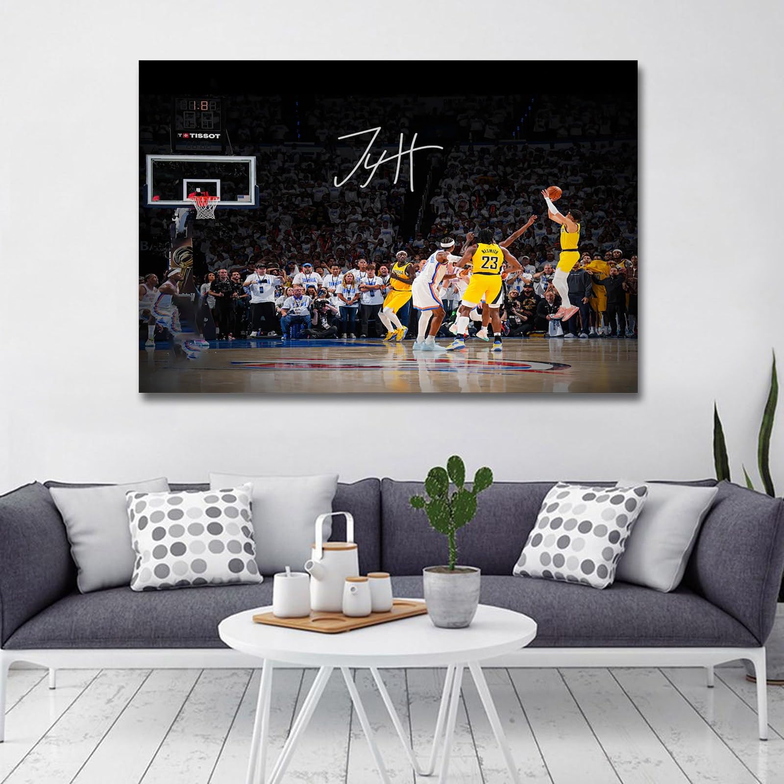 Canvas Rolls: If you choose Canvas rolls, please note that we will roll the canvas and ship it to you, it will not appear on the frame. The image is the effect of installing the frame. High-quality canvas HD pictures, durable and waterproof. Tyrese Haliburton Signed Poster The vivid scenes will illuminate your walls. Can make your house look vibrant and creative.