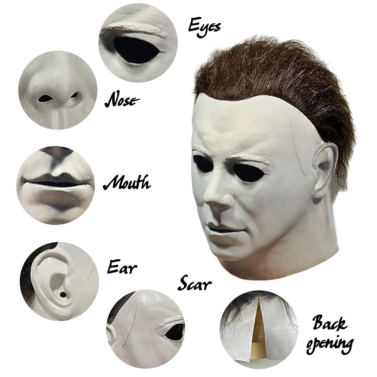 ๐ชMaterialโโMichael Myers Mask made of 100% natural latex, high quality material, safe and non-toxic. The Michael Myers mask is made of latex, so there will be a smell, which is normal. Open the package and let it ventilate for 1-2 days to dissipate the smell.