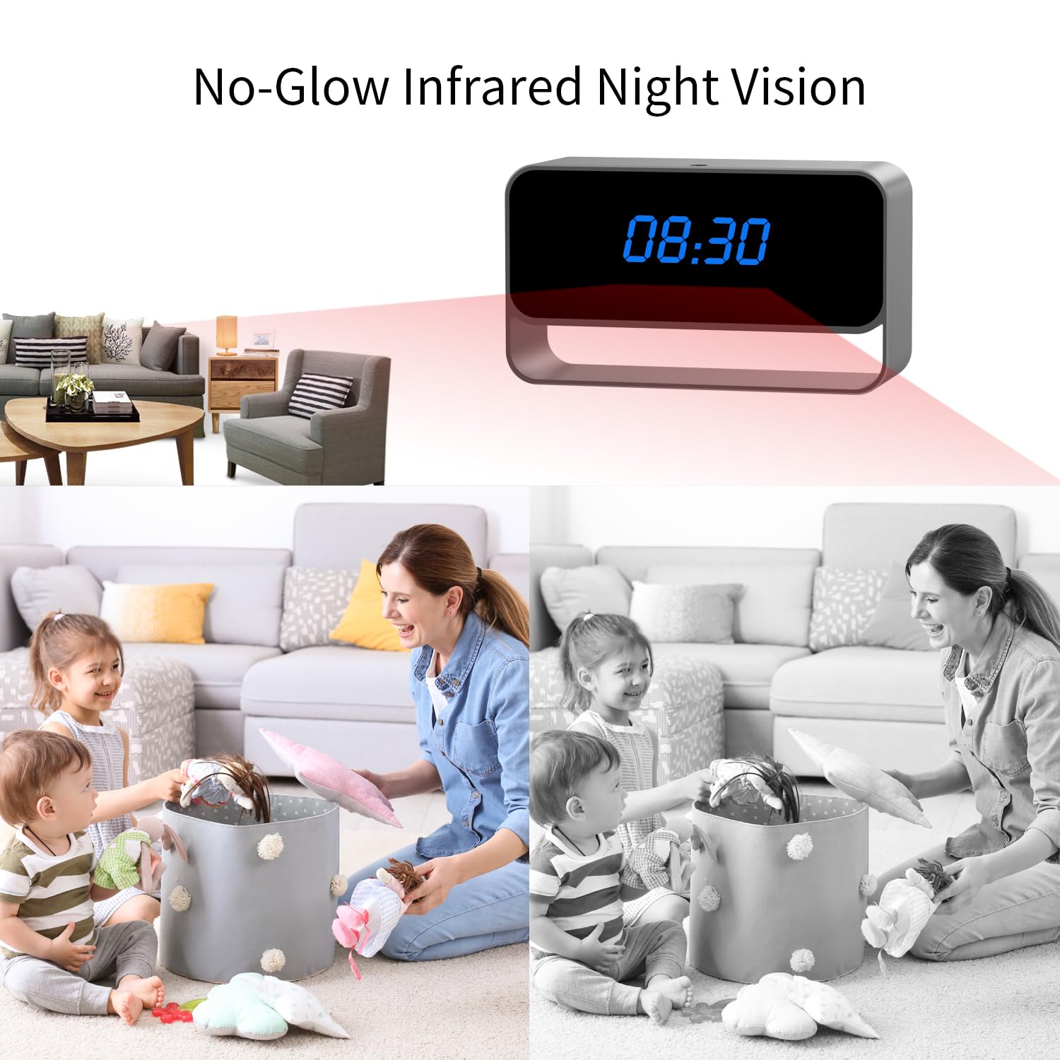 【1080P Full HD with 140° Wide-Angle View】Capture crisp, clear video with full 1080p high-definition resolution and a 140° wide-angle lens. Designed to provide broad room coverage, this indoor clock camera helps you see more of your space in sharp detail without blind spots.