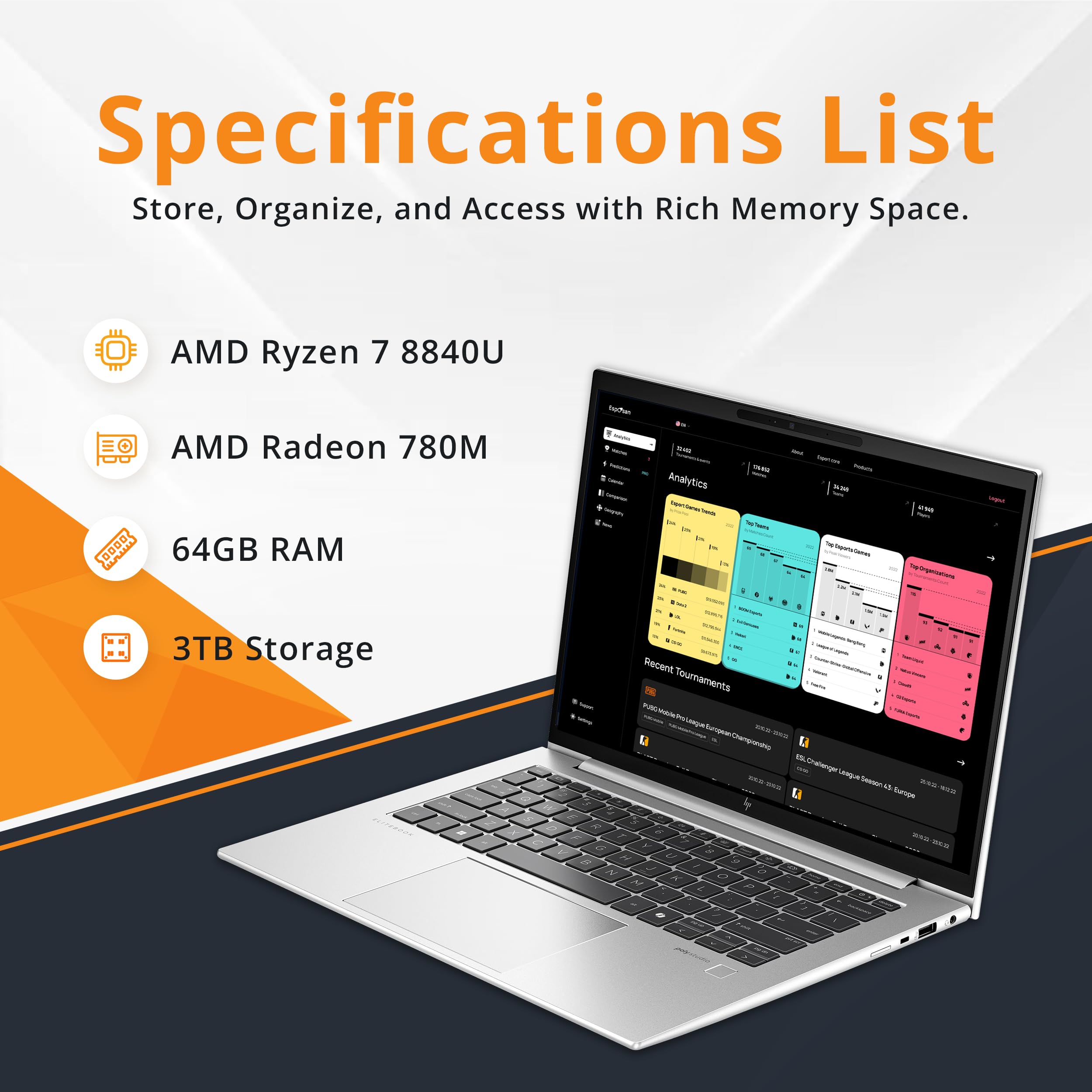 HP EliteBook 845 G11 Laptop, 14" WUXGA IPS Touch, AMD Ryzen 7 PRO 8840U