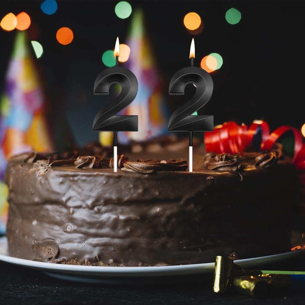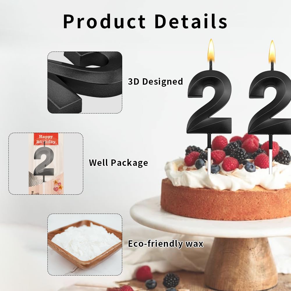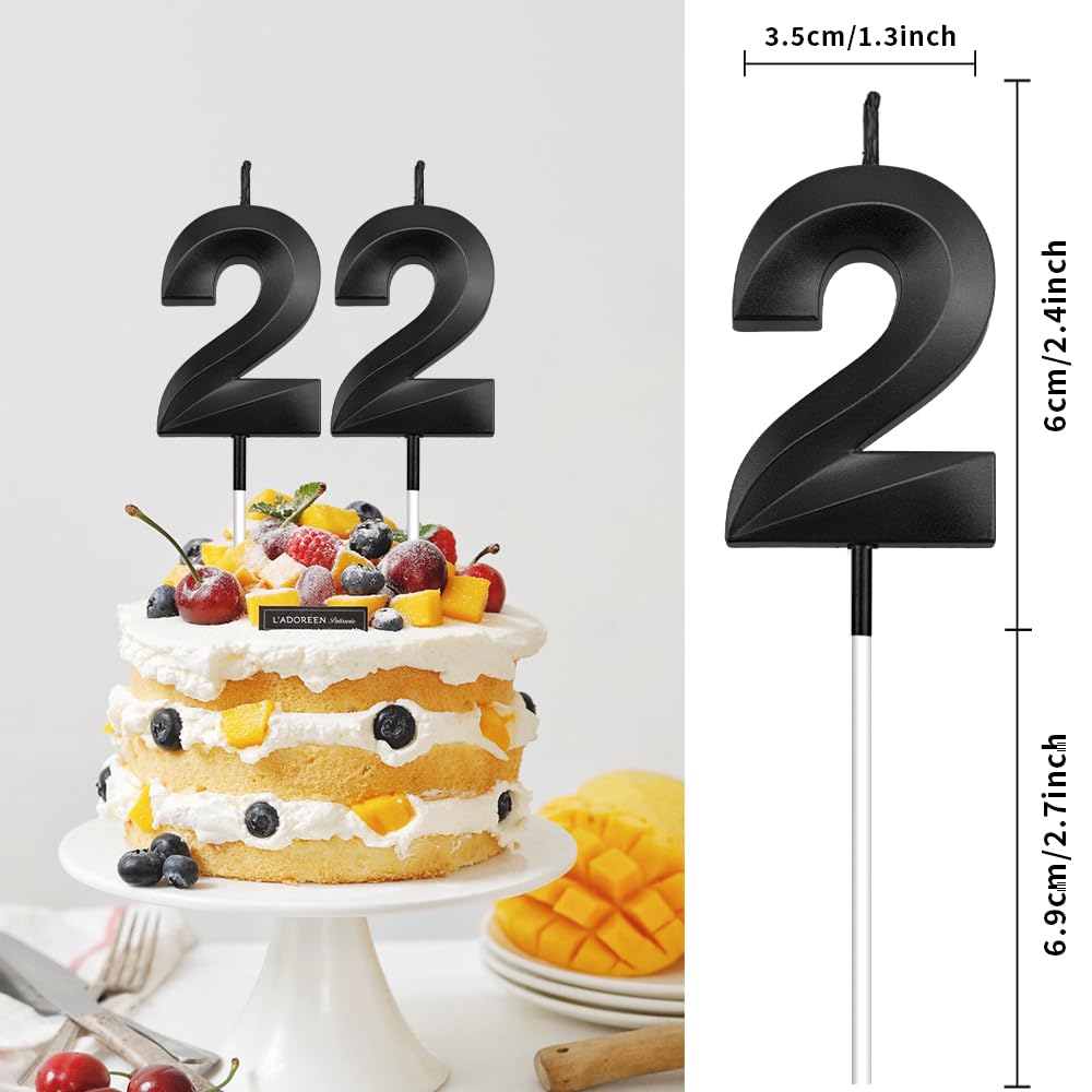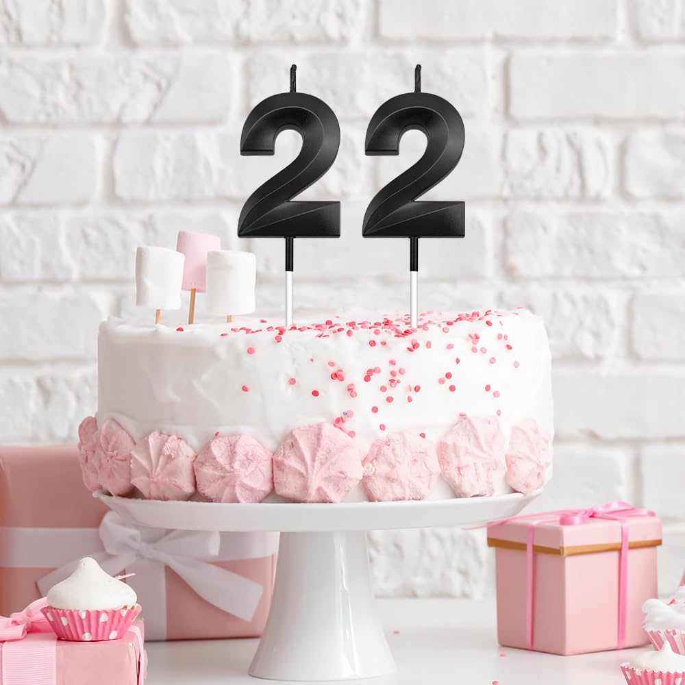 3d Visual Sense Birthday Candles: Package contains 2 Pcs black birthday candles 22 including number 2 birthday candle and number 5 birthday candle. The 22 candles for cake is eye-catching and sparkling in the dark light, you can also use 22th birthday candles to be beautiful cake decorations to embellish your cakes and cupcakes make your birthday cakes stand out, also you match these candles as 52th birthday cadles for women men. Every birthday need be document it whether young or old.