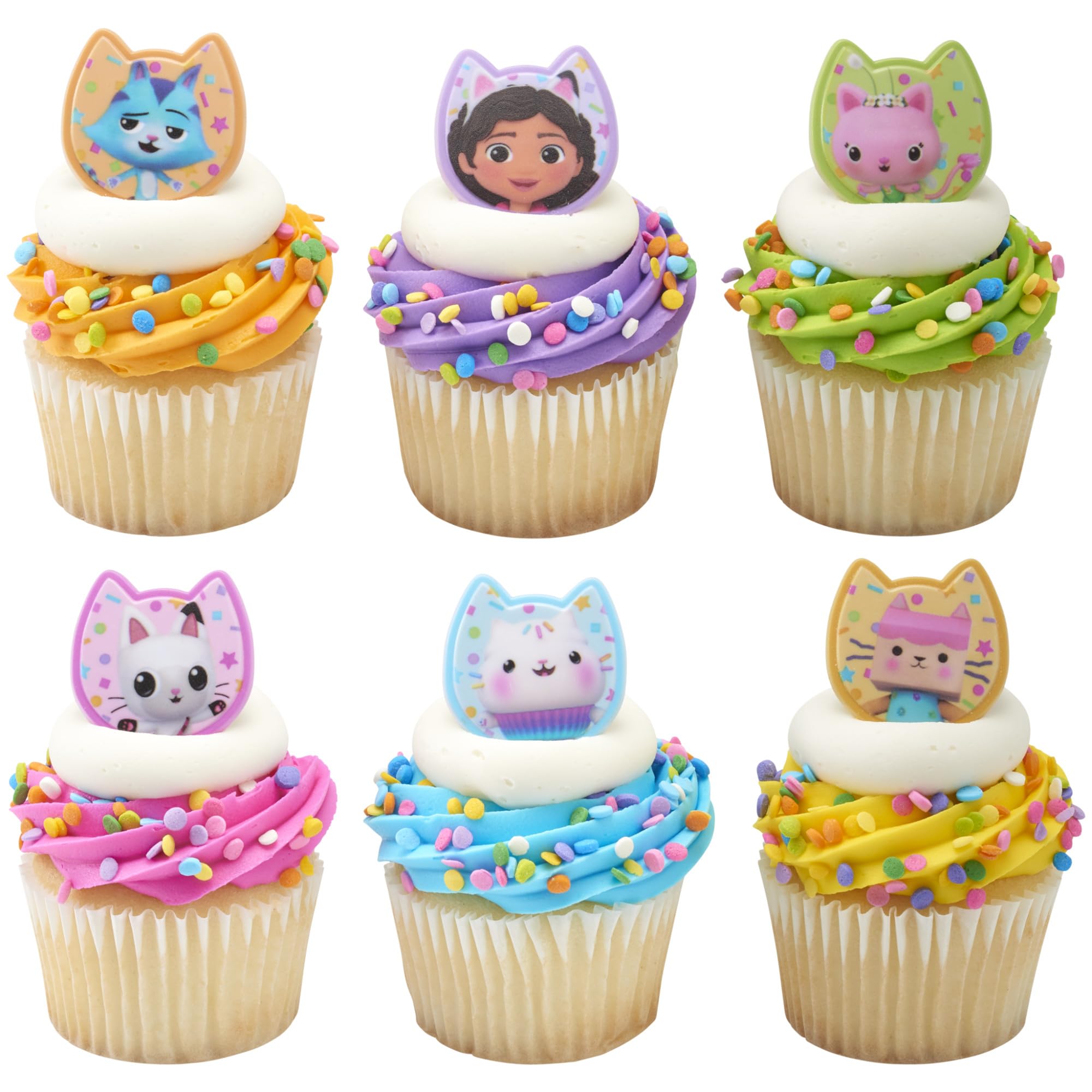 DecoPac DreamWorks Gabby's Dollhouse Cupcake Rings - 24 Colorful Cupcake Rings featuring Gabby, Pandy Paws, Cakey Cat, CatRat, Kitty Fairy, and Baby Box.