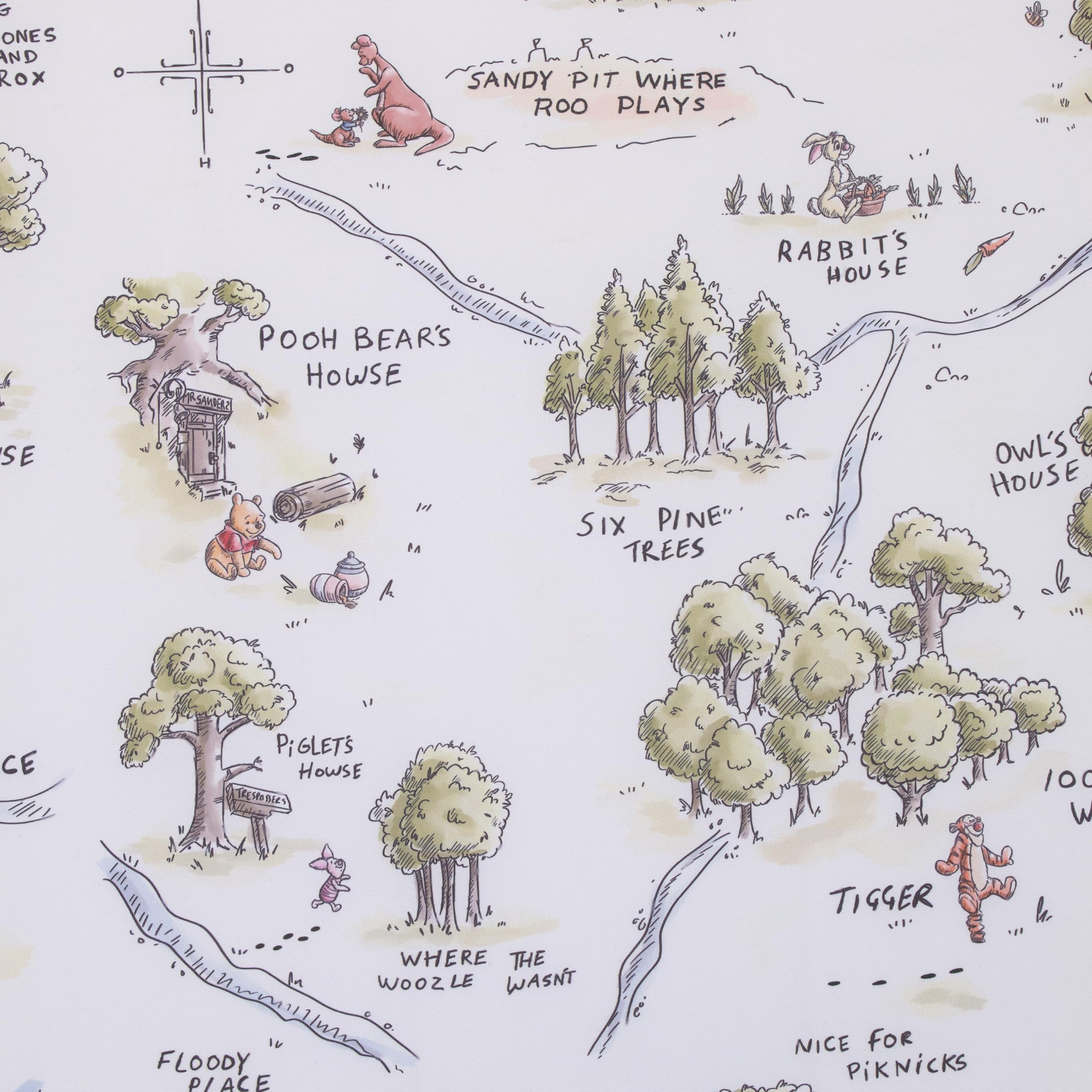 DISNEY CLASSIC DESIGN – An adorable nursery addition featuring a playful map of 100 Acre Woods with Winnie the Pooh and friends! Perfect for your Classic Pooh nursery and to inspire fun dreams of adventures with Pooh, Piglet, Eeyore, Tigger, Kanga, Baby Roo, Rabbit, and Christopher Robin.