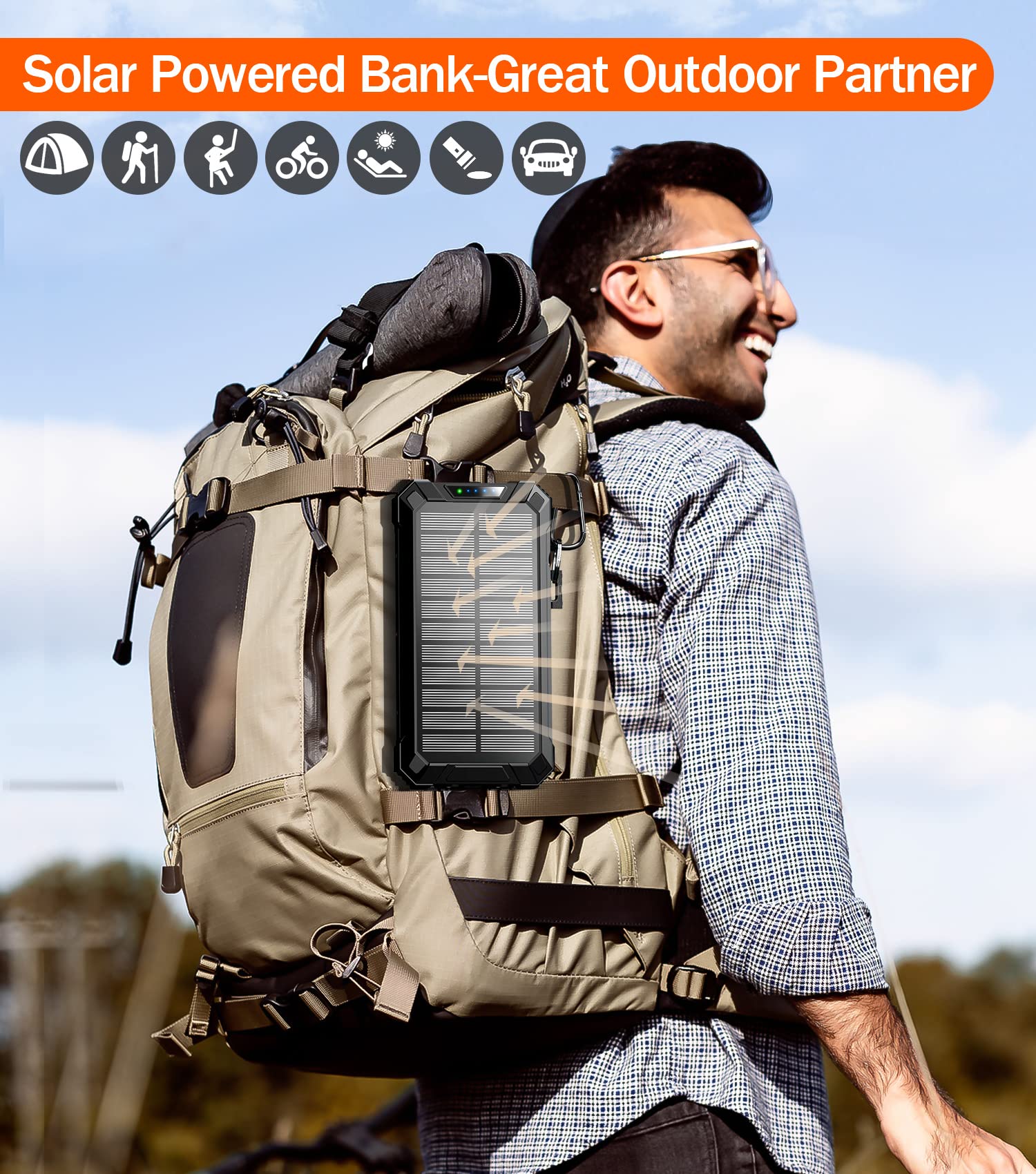 [Sturdy&Durable Design for Outdoor] This solar battery pack is well made to be Waterproof/Shockproof/Dust-proof, which can withstand the harsh environment outdoors. It’s equipped with Dual super bright LED lights, a Must-Have tool for outdoor activities and home emergencies.