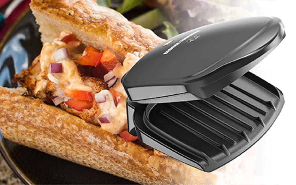It’s the kitchen appliance that changed the grilling game forever. The George Foreman 2-Serving Classic Plate Grill and Panini Press delivers fast grilling and delicious results for steak, burgers, chicken, veggies, and more. The proprietary sloped surface helps remove fat during cooking, and the George Tough nonstick coating wipes clean after every use. The compact grill’s dual contact heating speeds up grilling to get food on the table in record time. What will you make on your George Foreman Grill? *from 1/4lb. uncooked 80/20 ground chuck