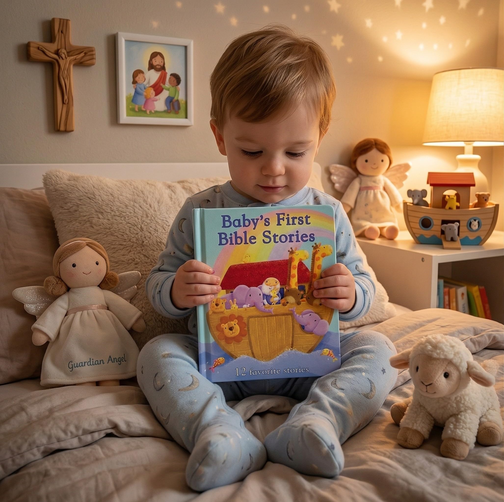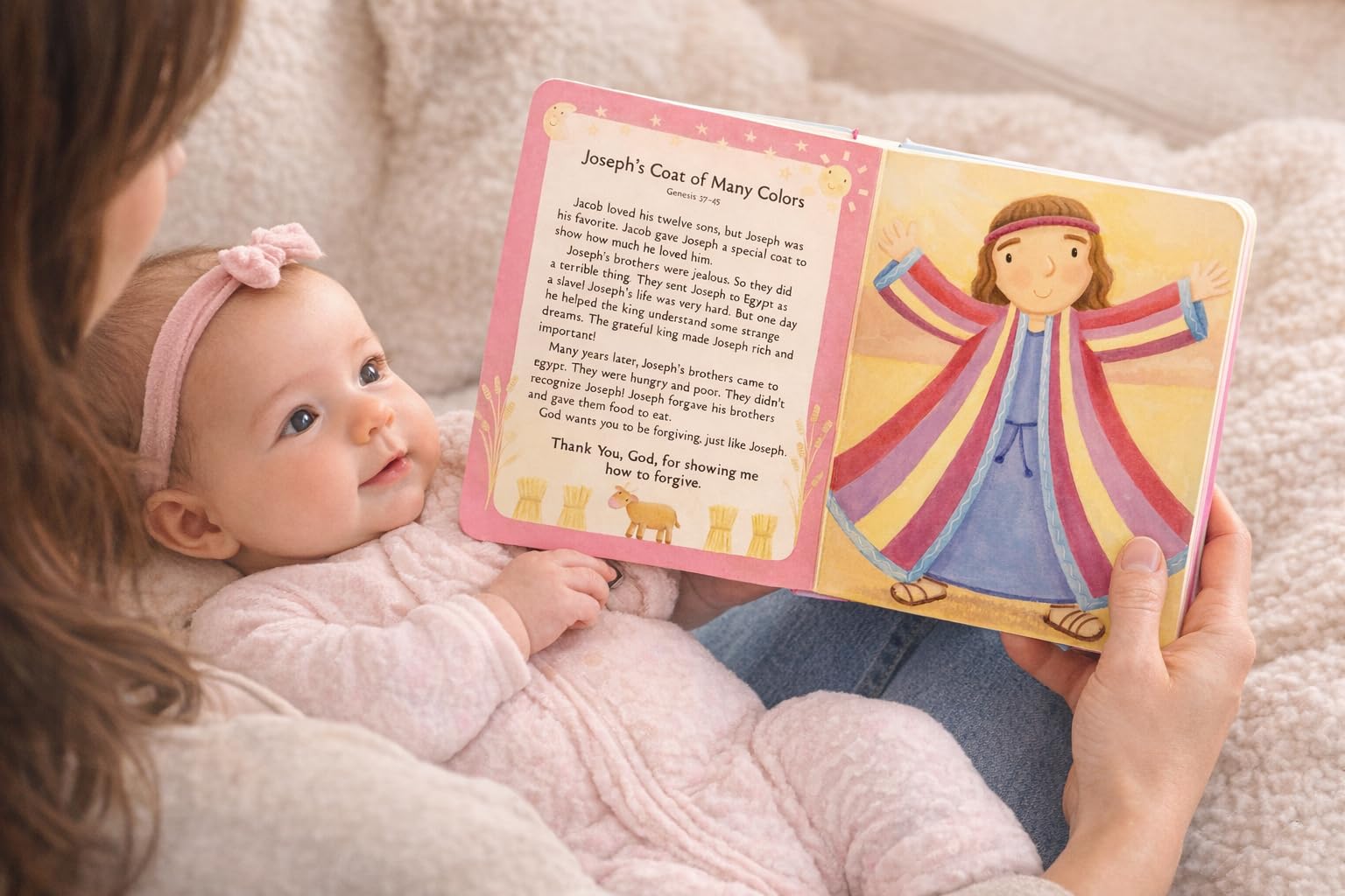 Share Bible stories and the love of Christ with your little one in this collection of bright illustrations and sweet age-appropriate stories and prayers. Each story and prayer includes an interactive element to help children develop their own relationships with God. This sturdy padded board book is a wonderful introduction to faith for young boys and girls. Bible stories collection included: Creation, Noah’s Ark, Baby Moses, Daniel and the Lions, and more! Includes 12 favorite stories from the Bible, retold in simple language which helps make it easy for toddlers to understand Beautiful illustrations keep your child engaged, and sturdy, thick board pages are designed to withstand traditional wear and tear Introduce Christian and religious beliefs to your little ones with prayers for any situation, and easy-to-read foundational Bible stories This Bible for kids encourages curiosity and bonding between parents and children through prayer and religion If looking for Christian gifts, this is great for baby showers, baptisms, birthdays, first communions, Easter basket stuffers, and Christmas