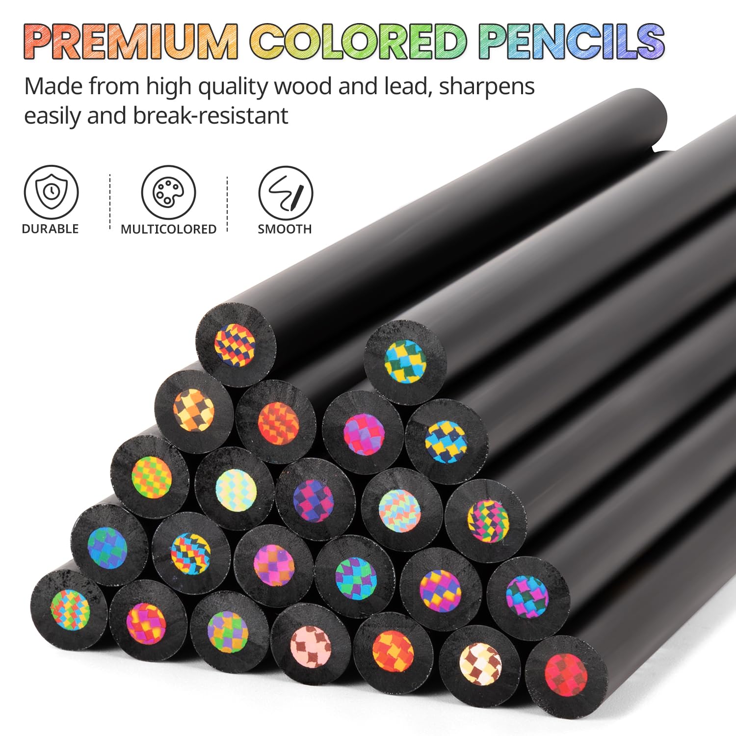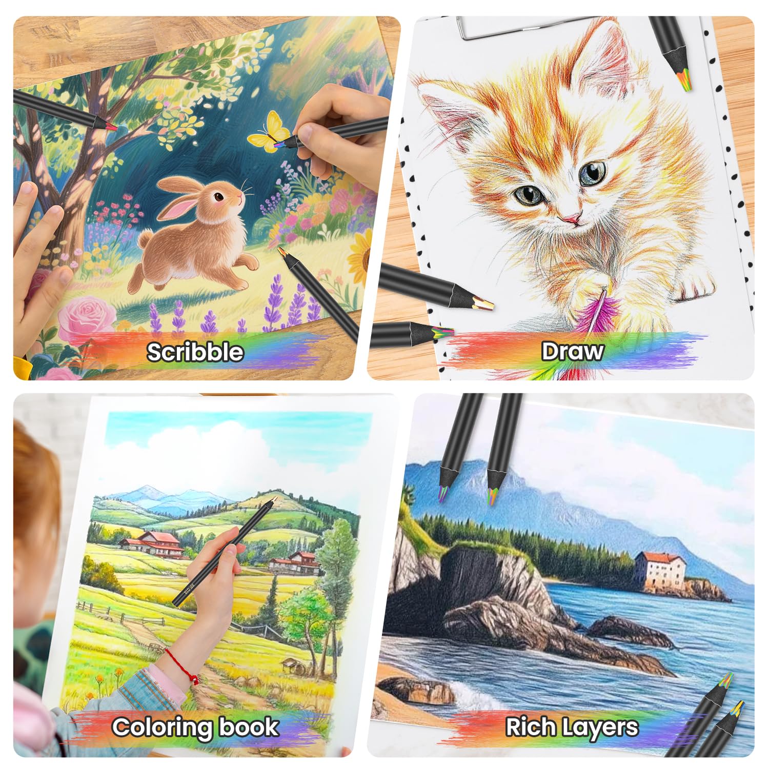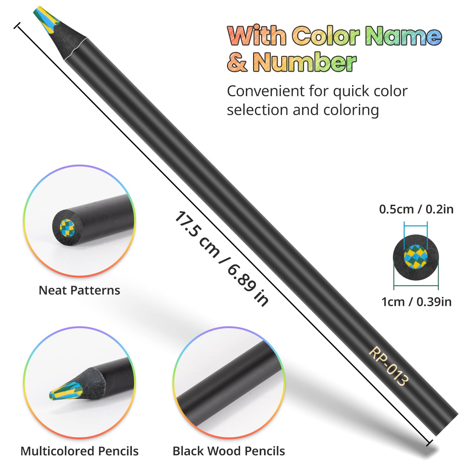 🎨[ Safe and Durable ] - The rainbow color pencil made of high quality black wood and premium pigments, and will not break easily, the pencil core is much thicker, diameter 0.5cm, very durable! The black wooden exterior of these pencils gives them a sleek and professional look, while the pre-sharpened tips ensure they are ready to use straight out of the box.