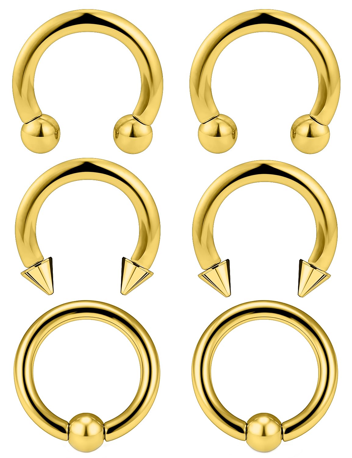One Order Included 6 PCS Septum Rings Have 3 Styles, 1 Pairs Spike Horseshoes Septum Rings,1 Pairs Balls Horseshoes Septum Rings,1 Pairs Captive Bead Septum Rings,Economical Price with Trendy Design Give You a Colorful Day.