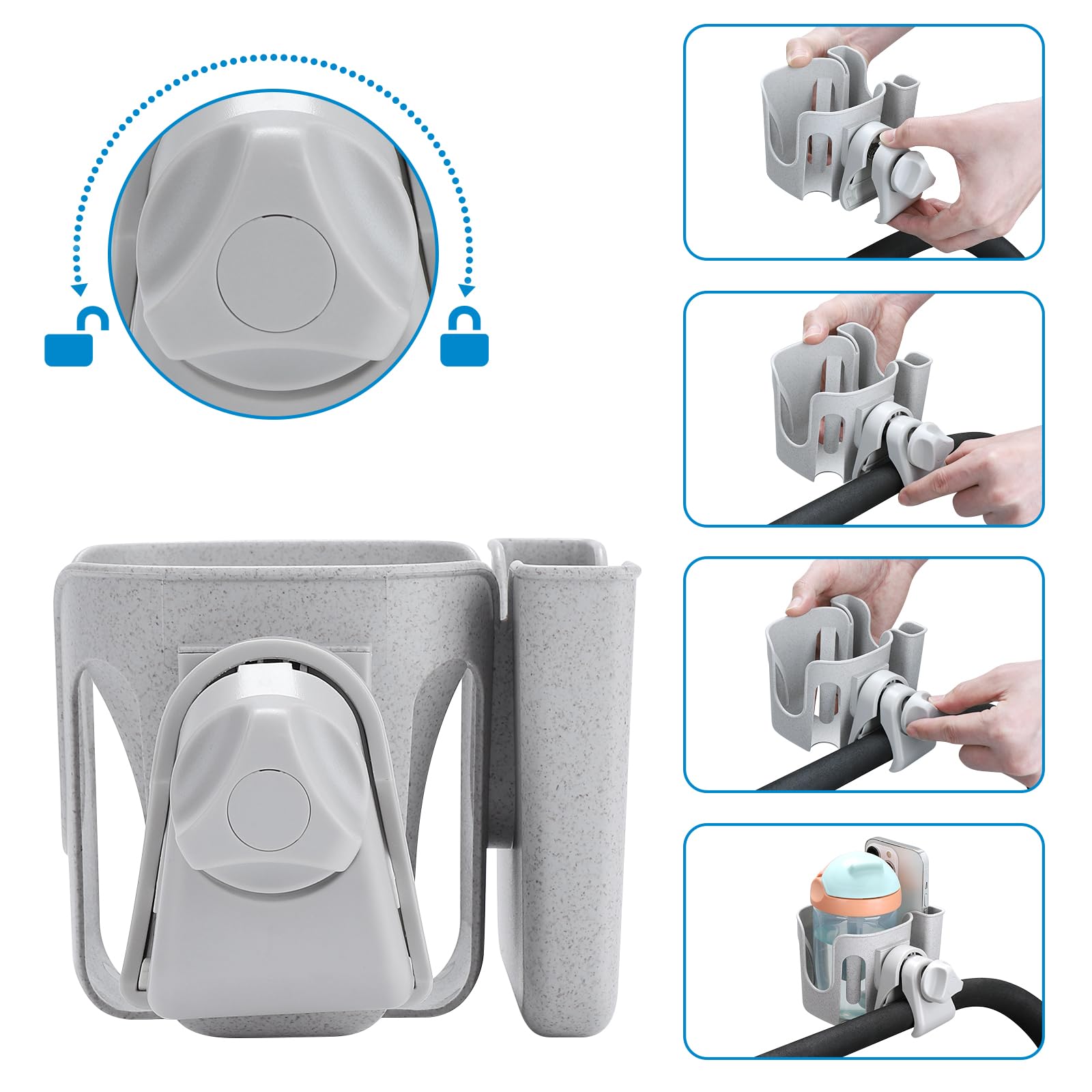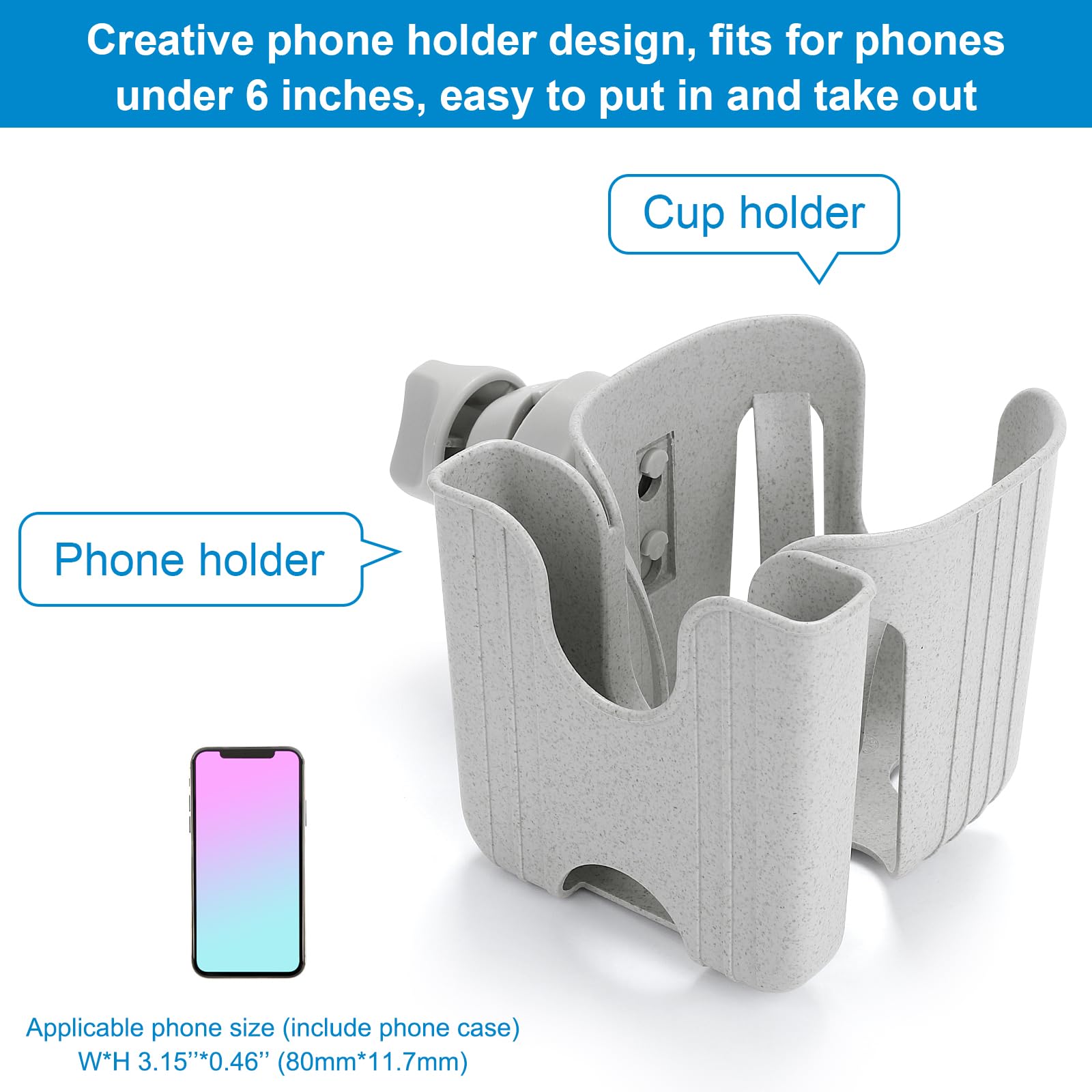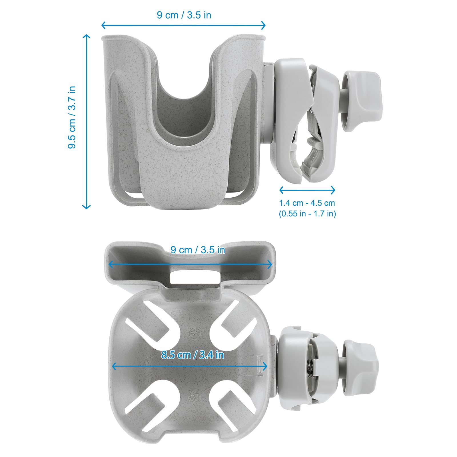 Multifunctional cup holder could be used for stroller, wheelchair, walker, bike, scooter, armrest, trolleys, pushchair, lawnmowers, ATV, treadmill, golf cart, shopping cart, kayak, boat handlebar, motorcycle, beach chair etc.