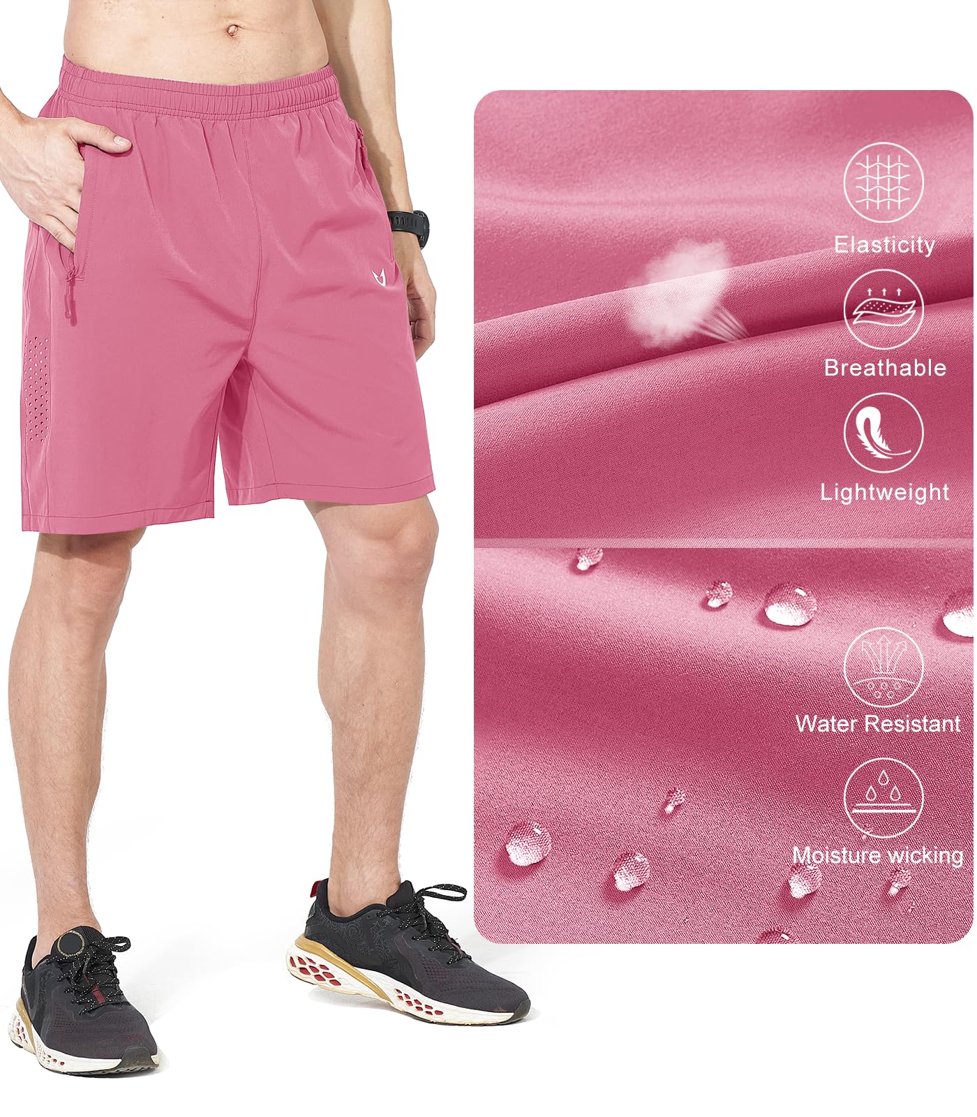 Lightweight & Breathability: Men's athletic hiking Shorts are made quality 4-Way Stretch/breathable and quick-drying fabric helps to wick away moisture and dry quickly keep you cool A synthetic of polyester and spandex can be very durable, abrasion-resistant, and stretchy enough to allow for better mobility