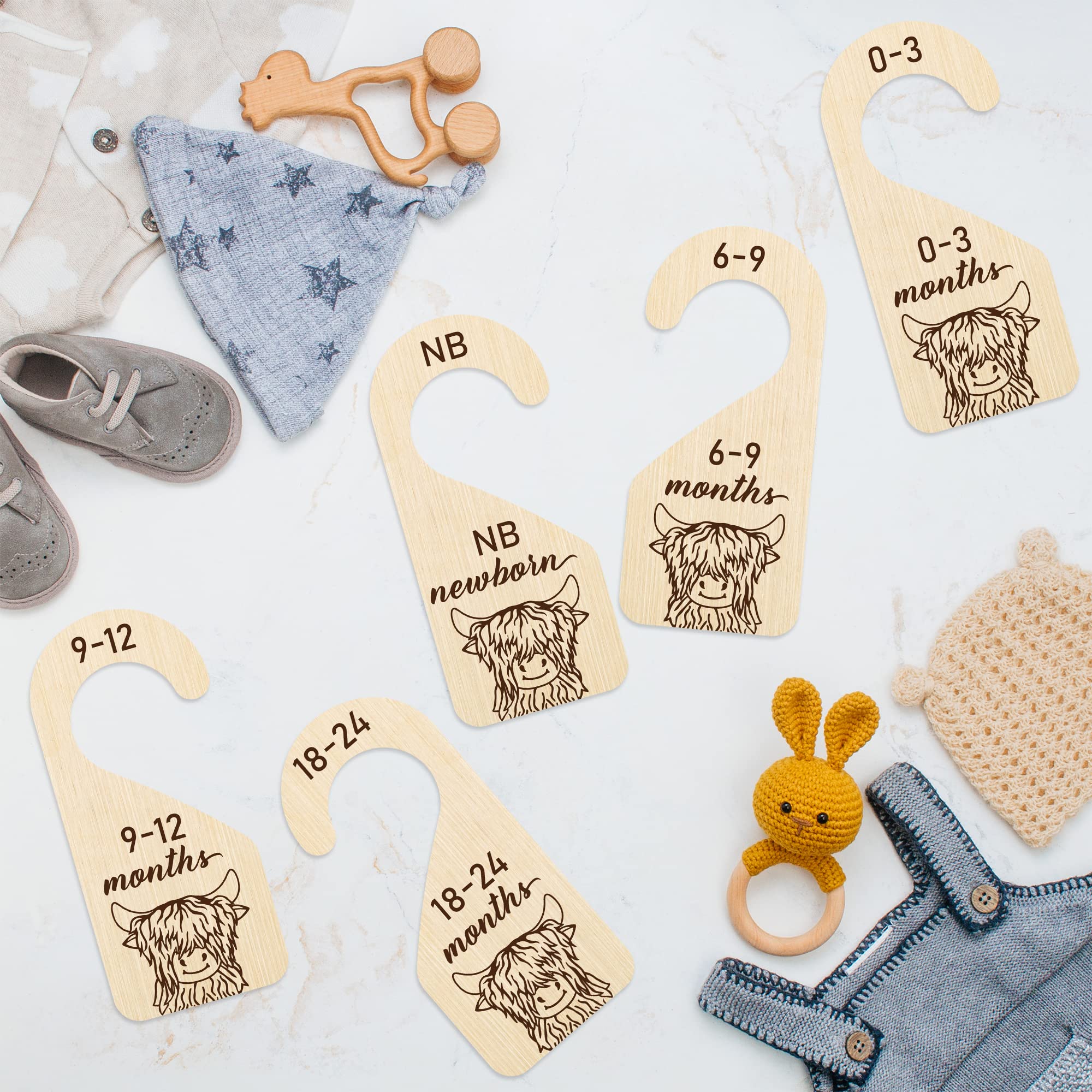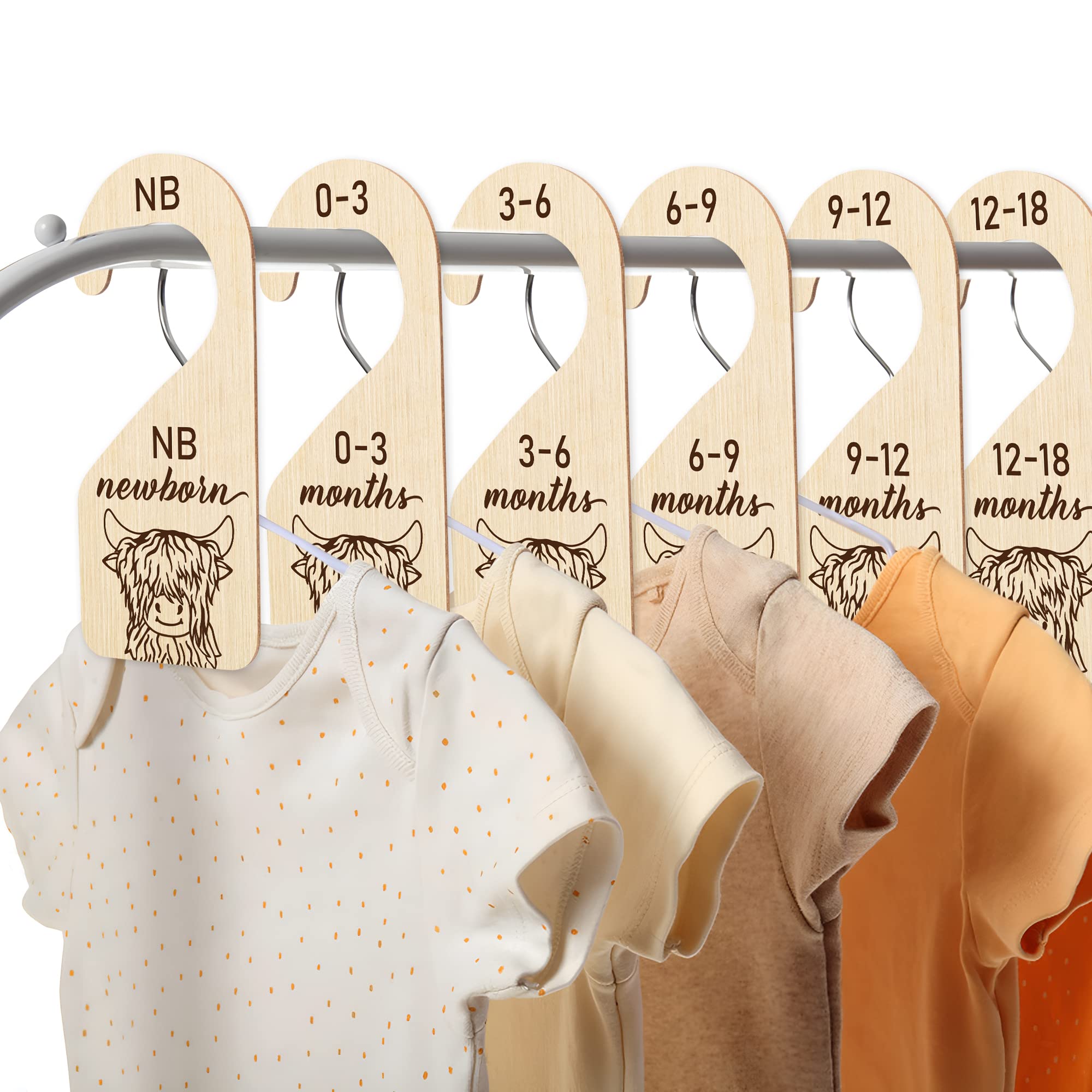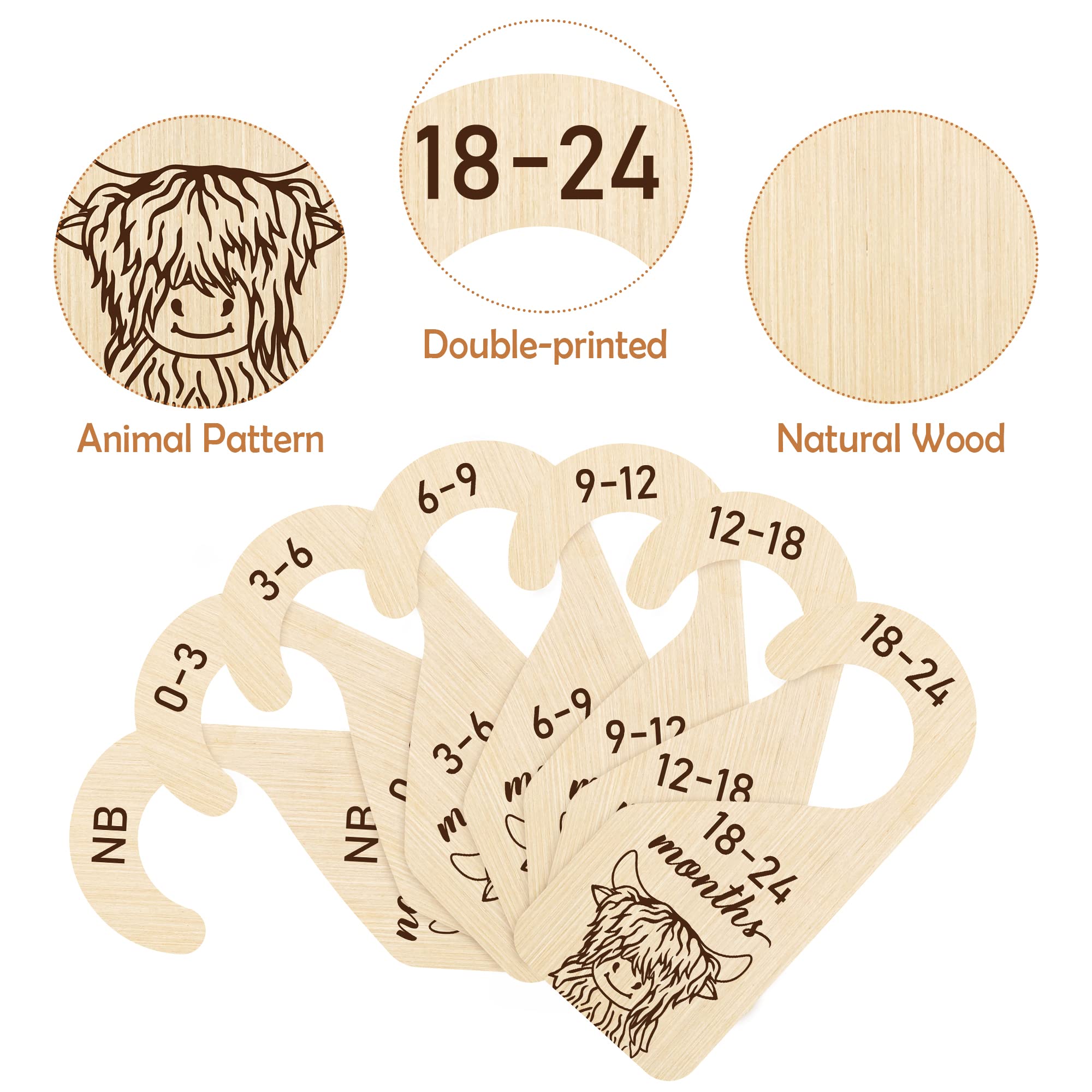 DELICATE DESIGN - Cute carved highland cow pattern, especially suitable for baby's clothes closet decoration. The age-distinguishing design will not be as difficult to identify as the baby storage bag, so you can easily find your baby's clothes.