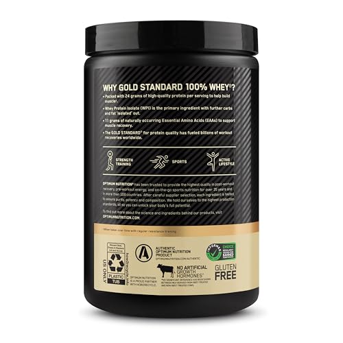 Gold Standard 100% Whey - 24g of protein per serving to help build and maintain muscle when taken over time with regular resistance training
