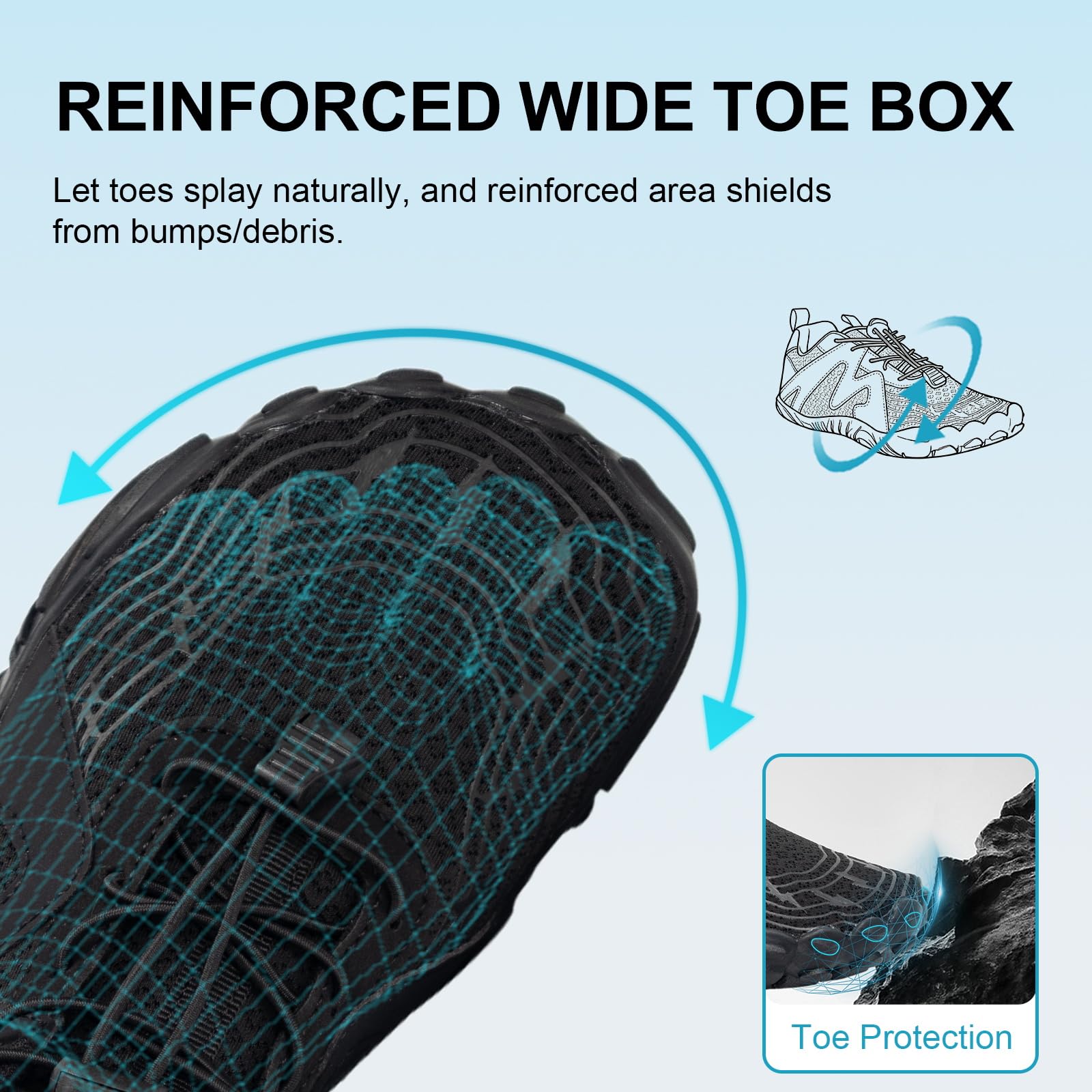 Wide Toe Box - Compared to the traditional trail running shoes, this women's barefoot shoe has a wider toe box design, which allows your toes to move and spread freely, promoting foot strength and flexibility. And this barefoot shoes has upgrade elastic drawstring allows you to quickly adjust the tightness of shoes and avoid the annoyance of tying your shoes.