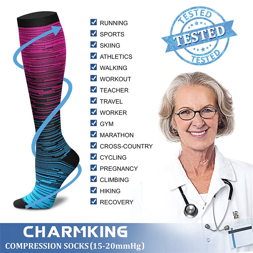 COMPRESSION SOCKS - We intend combining fashion, technology and science to bring you the triple comfort without. The material of our compression socks are upgraded with nylon percentage from 40% to 85%. Delivers 360-degree stretch for greater flexibility and durability. Breathable high performance fabric keeps an optimal temperature.